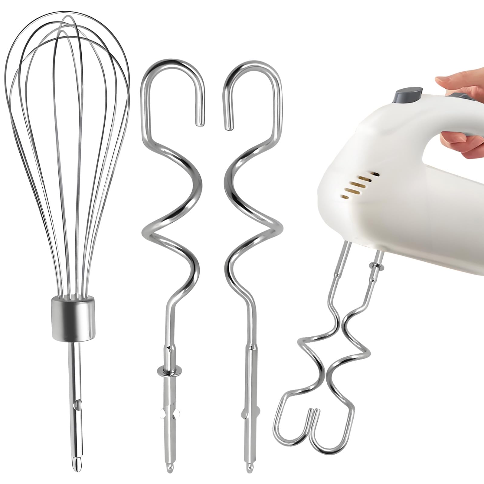 3 piezas de batidores de mano para ayuda de cocina, gancho de masa de acero inoxidable para batidor de huevos, accesorio para bati