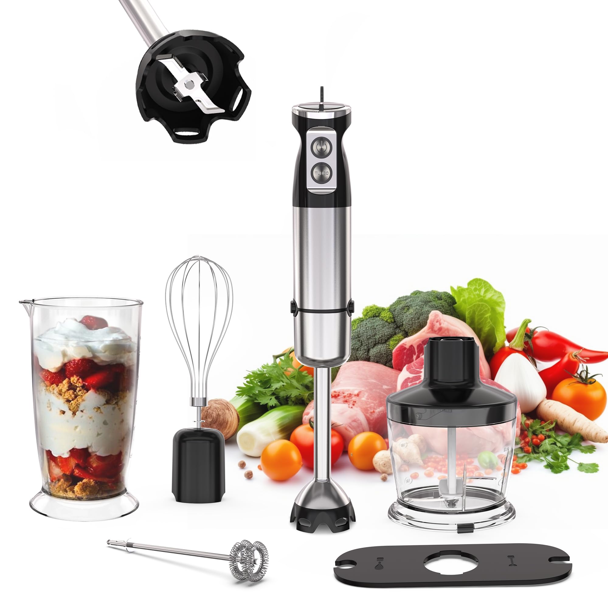 Keylitos Batidora de mano de inmersión 5 en 1, [actualizada] Batidora de mano con picador de 21.1 fl oz, vaso de precipitados de 2