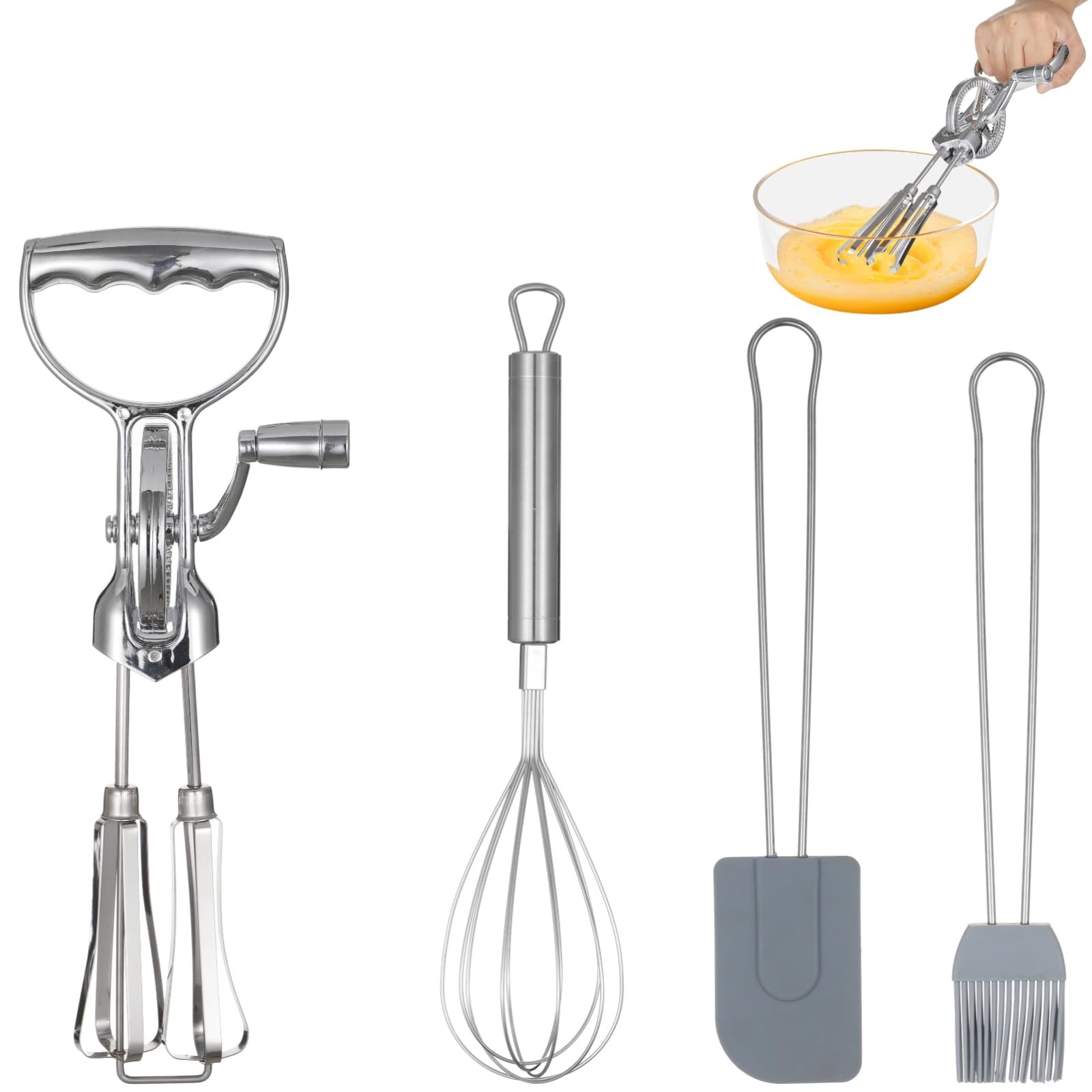 Juego de batidor de huevos giratorio, batidor giratorio manual con batidora, cepillo de silicona y espátula, batidor manual de dob