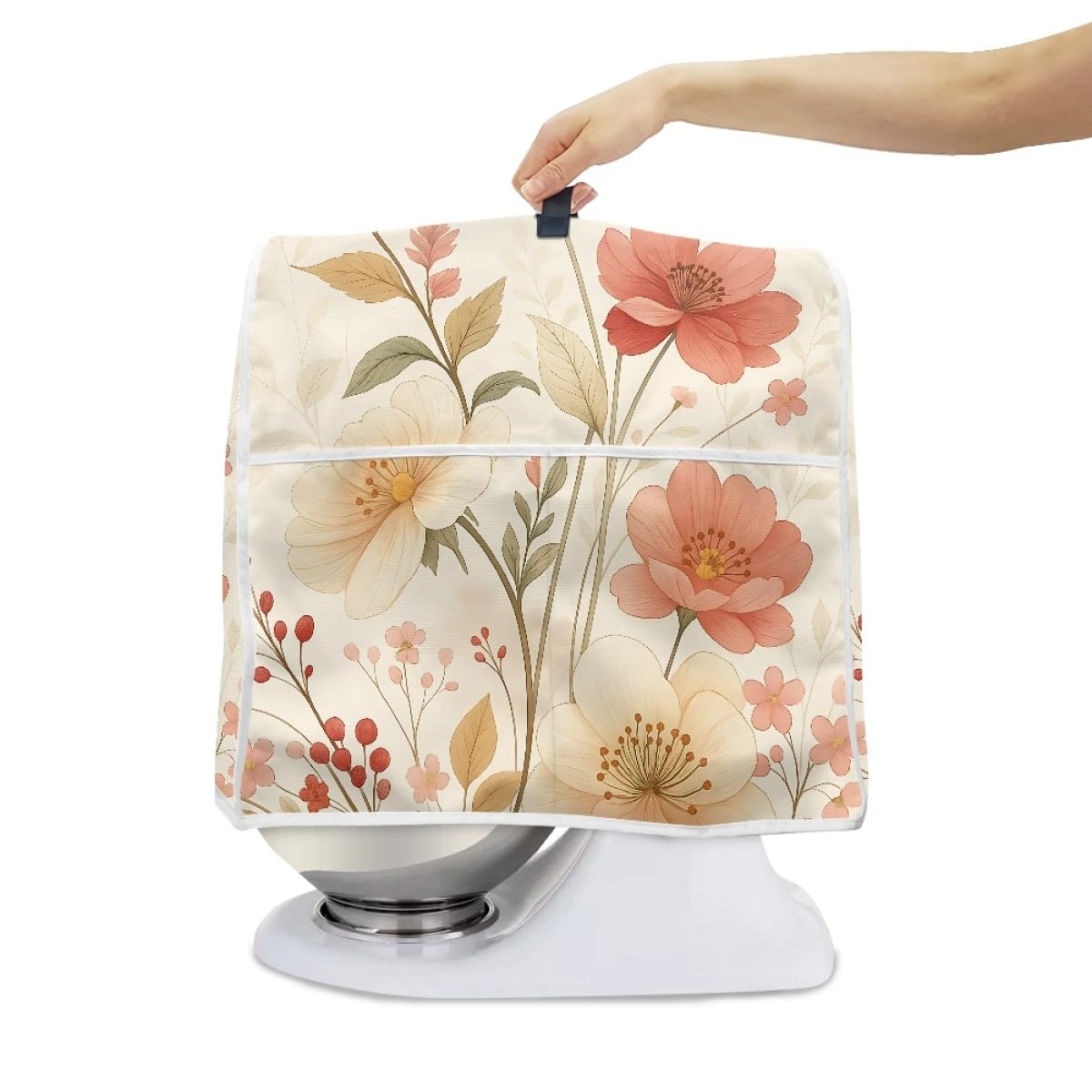 Cubierta antipolvo de flores compatible con batidora de pie de 6 a 8 cuartos de galón, cubierta de tela con bolsillos para batidor