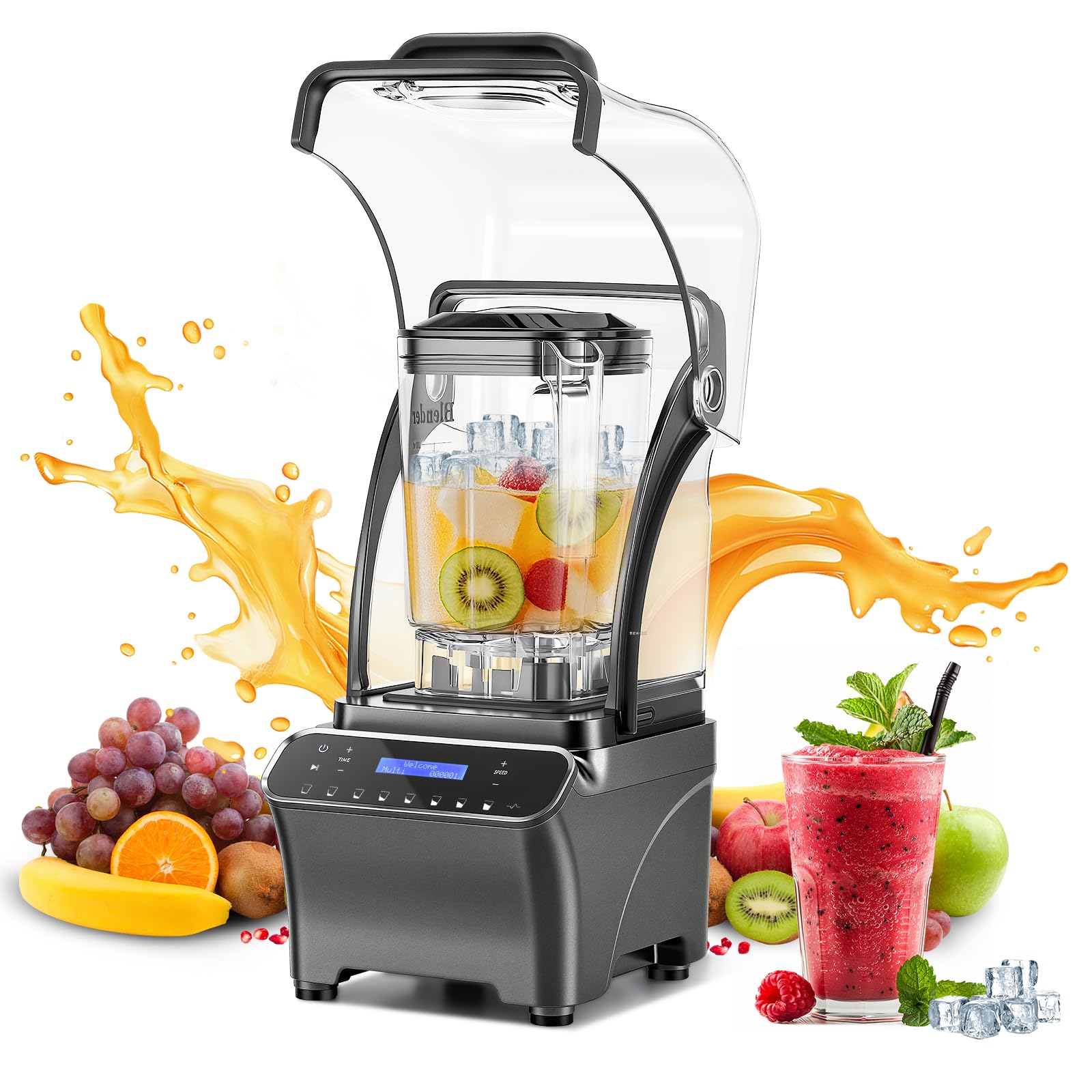 Licuadora silenciosa profesional de 2000 W con pantalla LCD, jarra de trituración de hielo de 1.8L, motor de grado comercial, cont