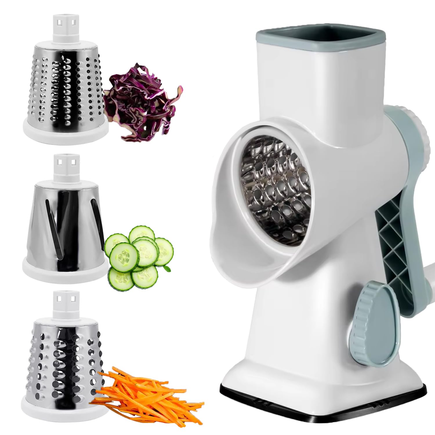‘s 5 en 1 Rallador de queso rotativo – Rallador de queso de mano de alta calidad con asa – Picador de alimentos para cocina – (bla