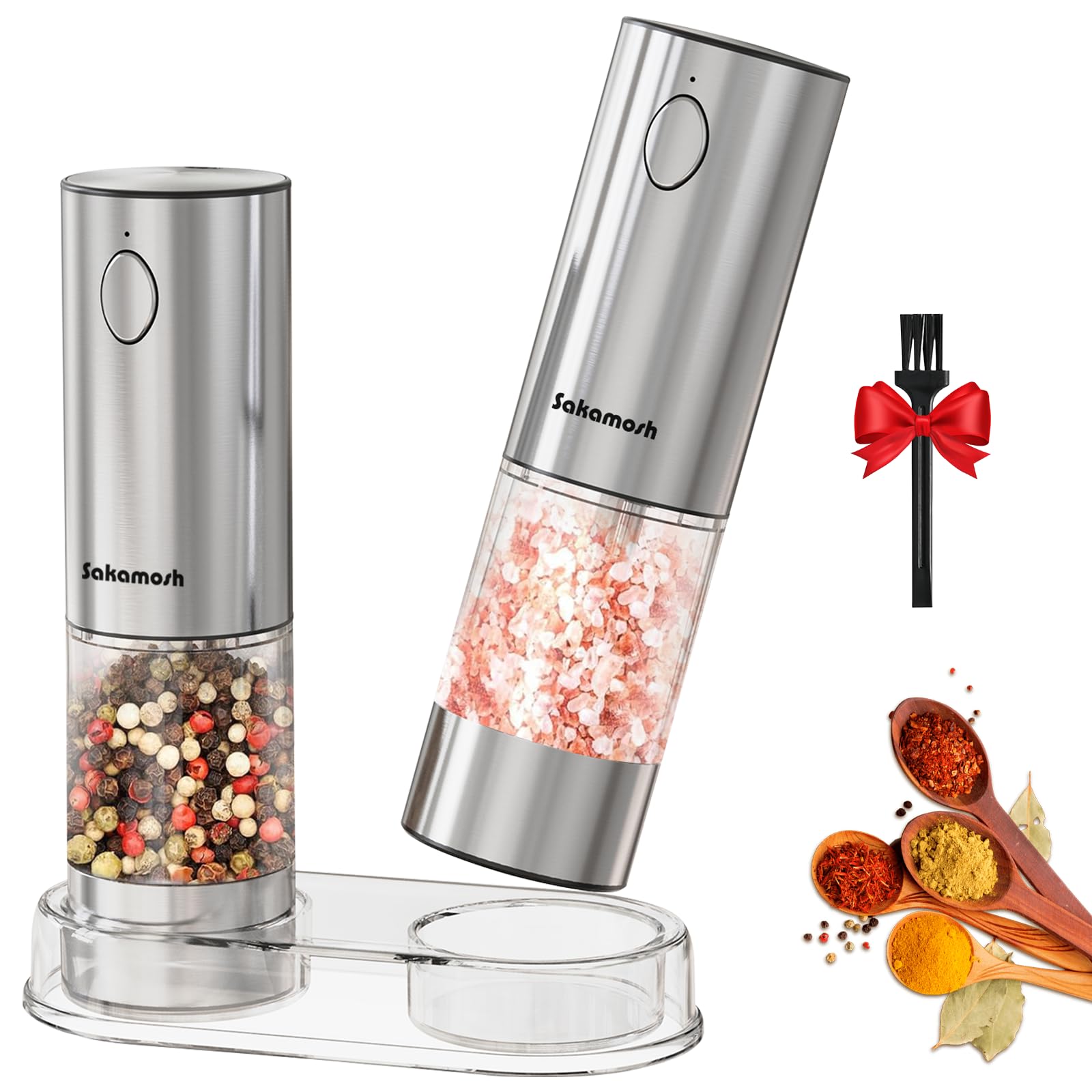 GiveBest Juego de molinillo eléctrico de sal y pimienta, molinos de acero inoxidable recargables, juego de agitadores automáticos