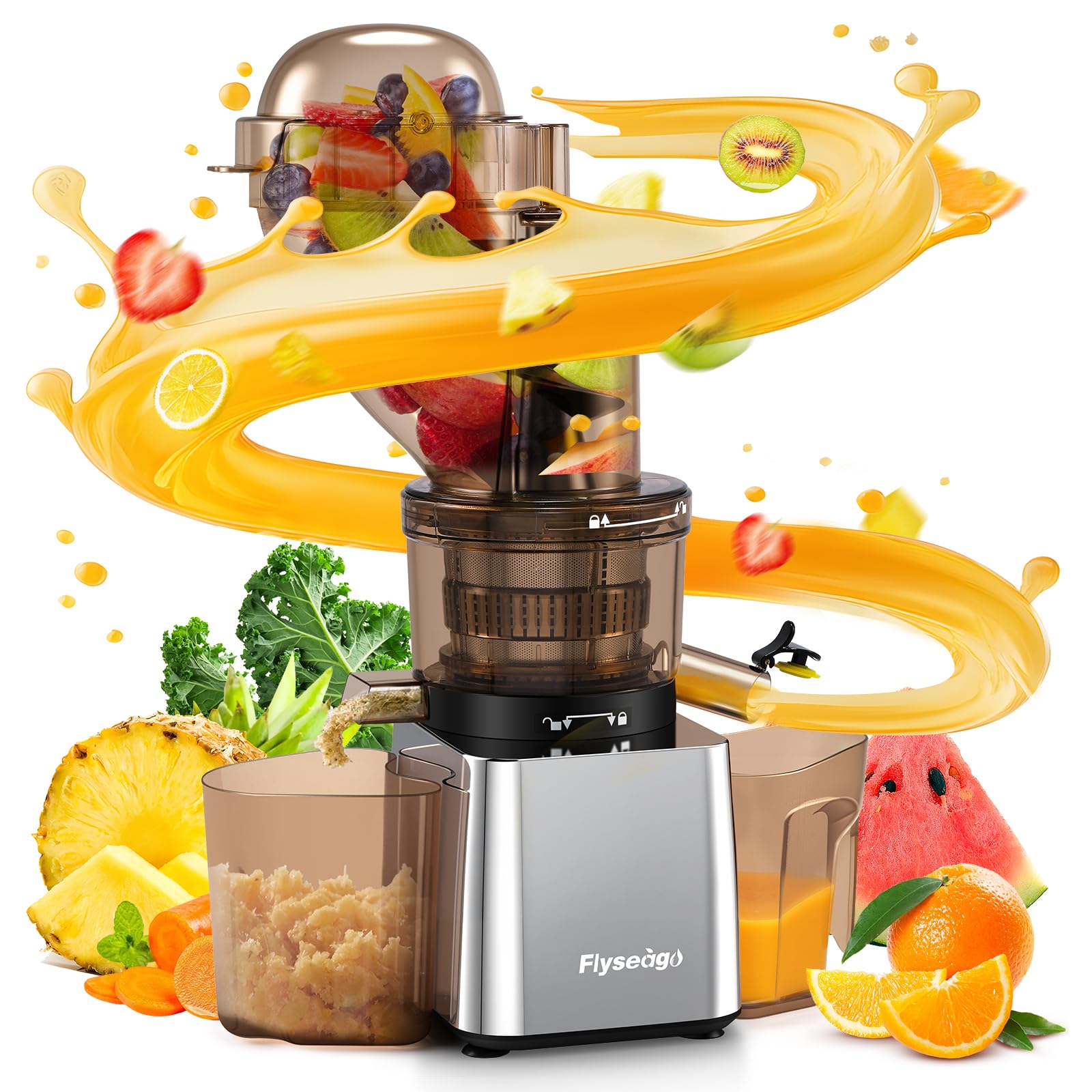 Cold Press Juicer, Masticating Juicer with Large Feed Chute Fit Whole Fruits & Vegetables,Stainless Steel Slow Masticating Juicer