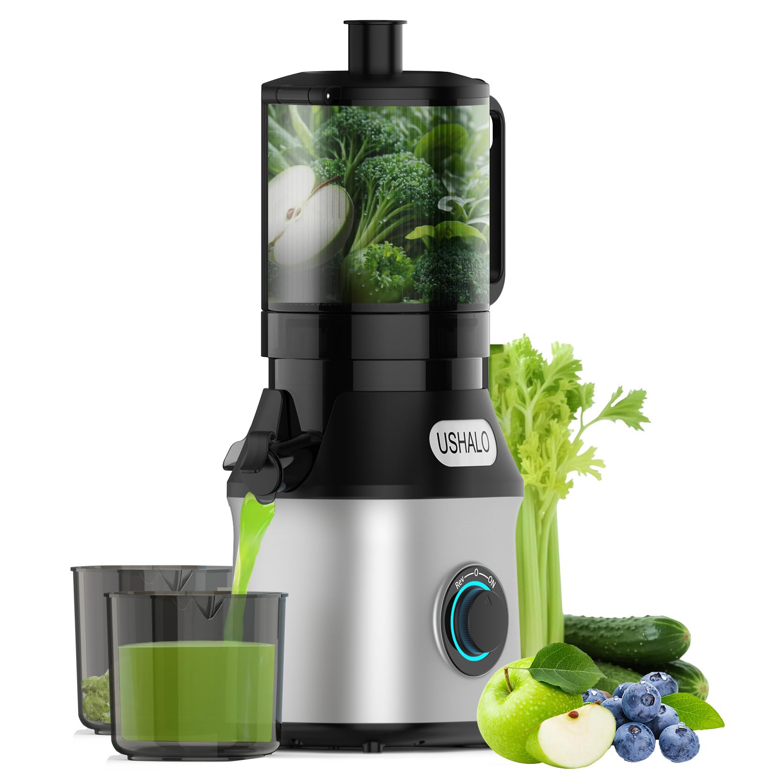 Exprimidor de prensa en frío, máquinas exprimidoras USHALO con canal de alimentación extra grande de 5.5 pulgadas, exprimidor de m