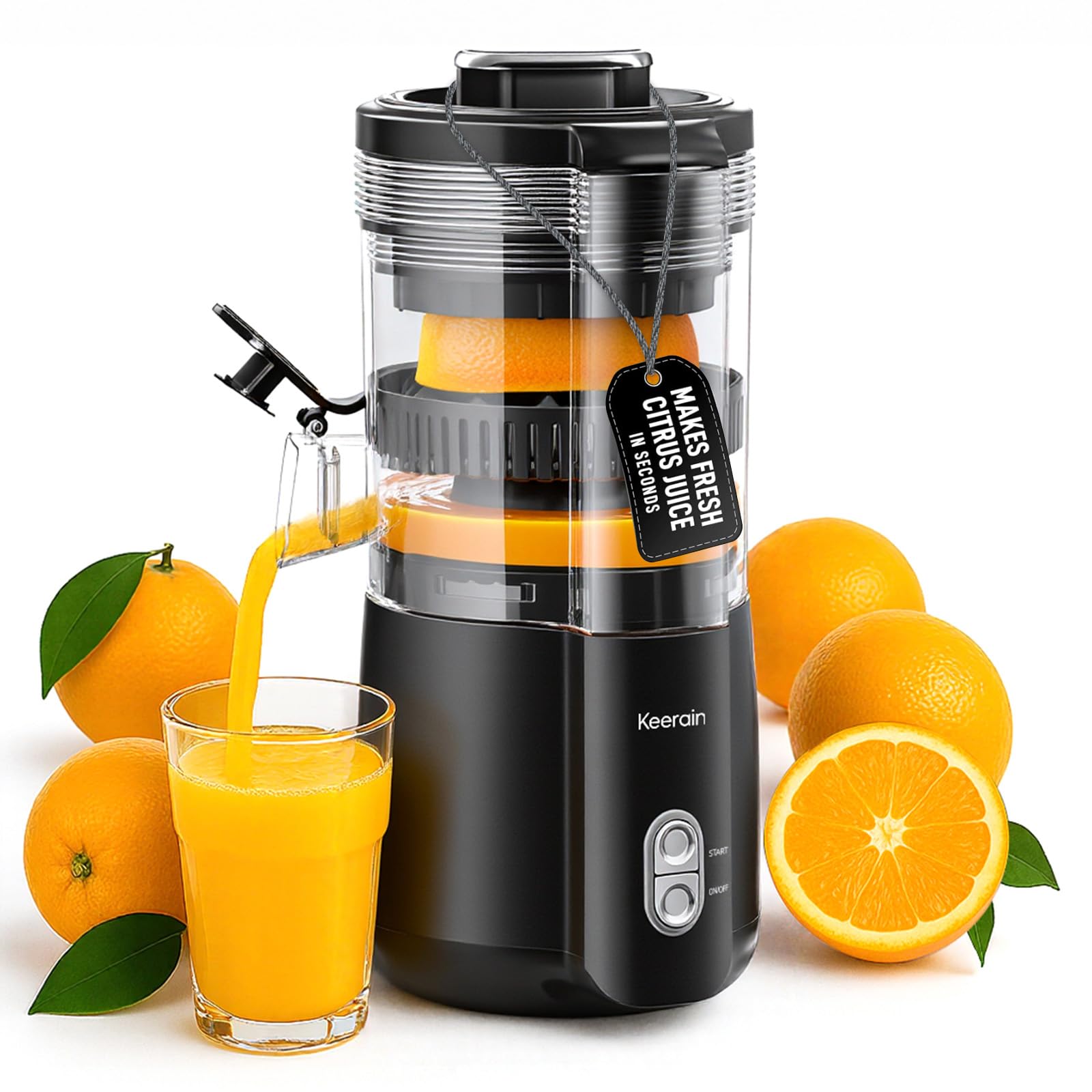 QCen Exprimidor eléctrico de cítricos, exprimidor eléctrico para naranja, limón y limas con mango de goma y dos conos de tamaño, b