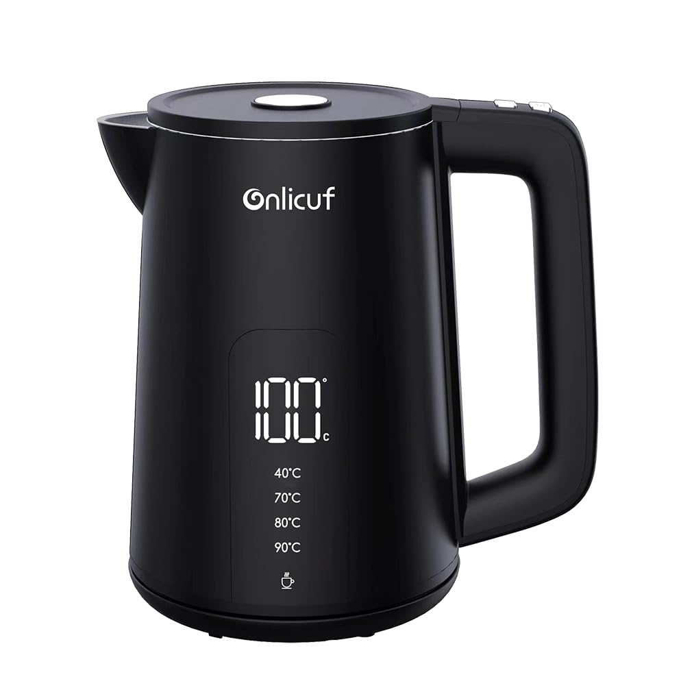 Tetera eléctrica con doble pared de tacto frío, calentador de agua de 1.7 L con control de temperatura, tetera de hervir de acero