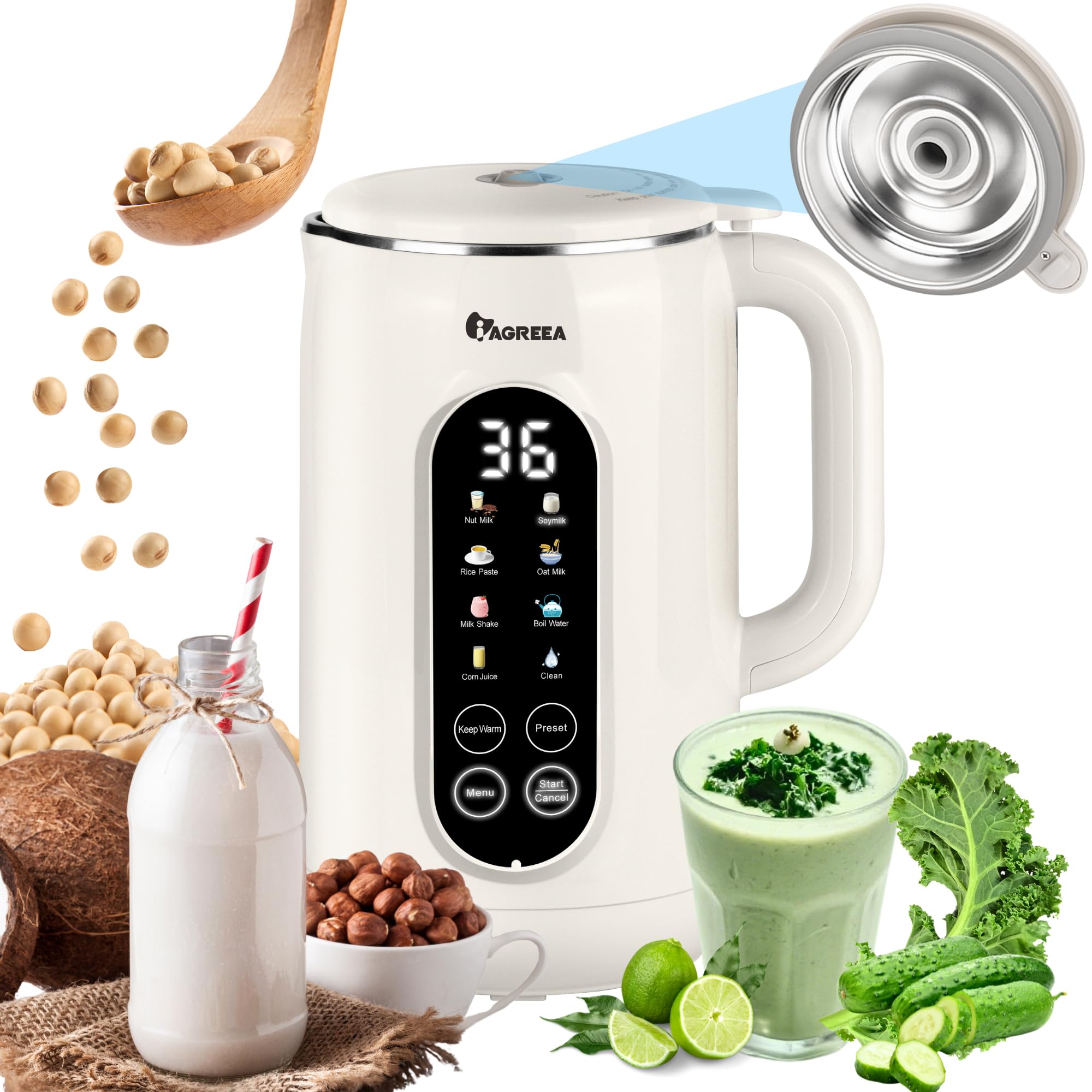 IAGREEA Máquina para fabricar leche de nuez de 35 onzas, tapa de acero inoxidable, sin BPA, máquina de leche de soja 8 en 1 para b