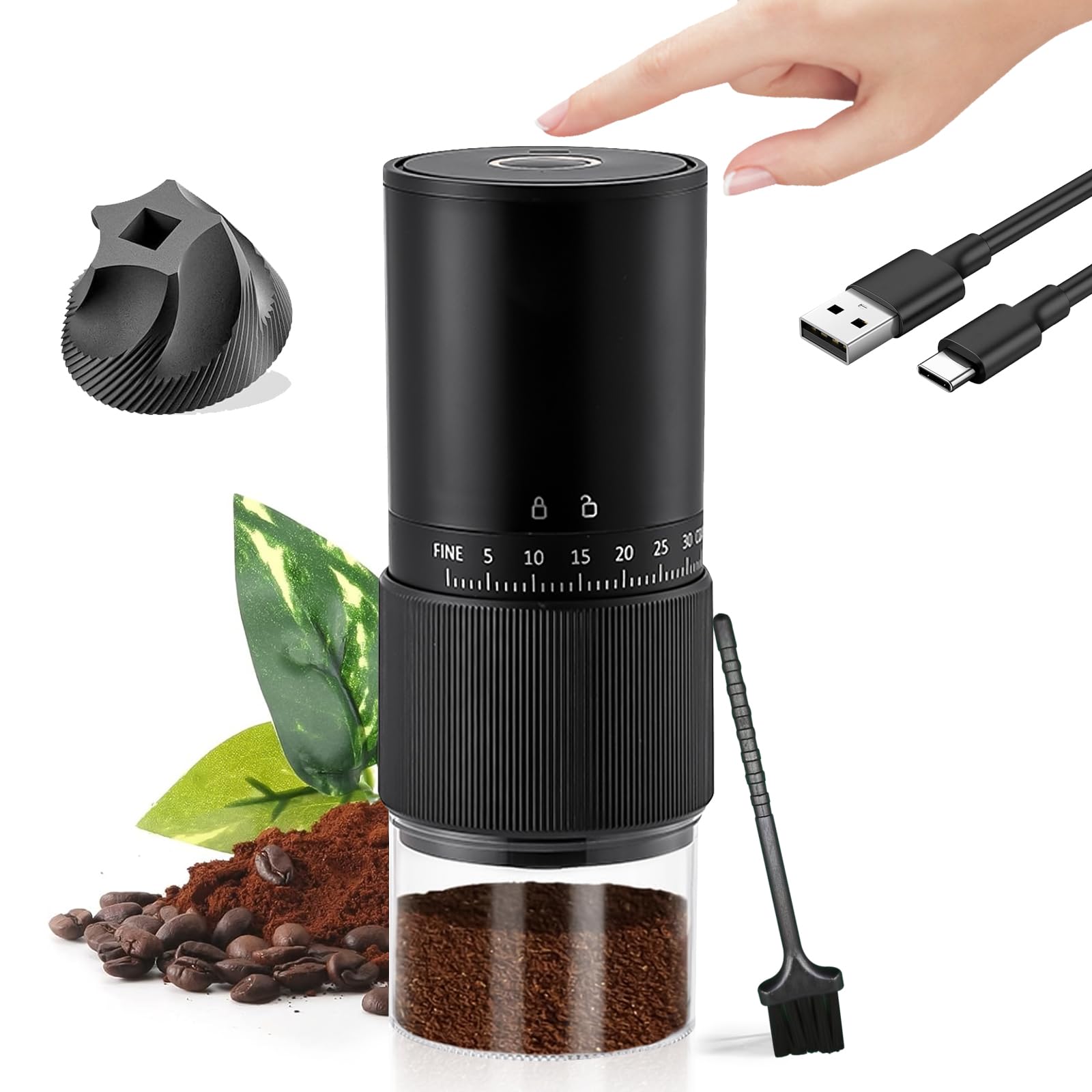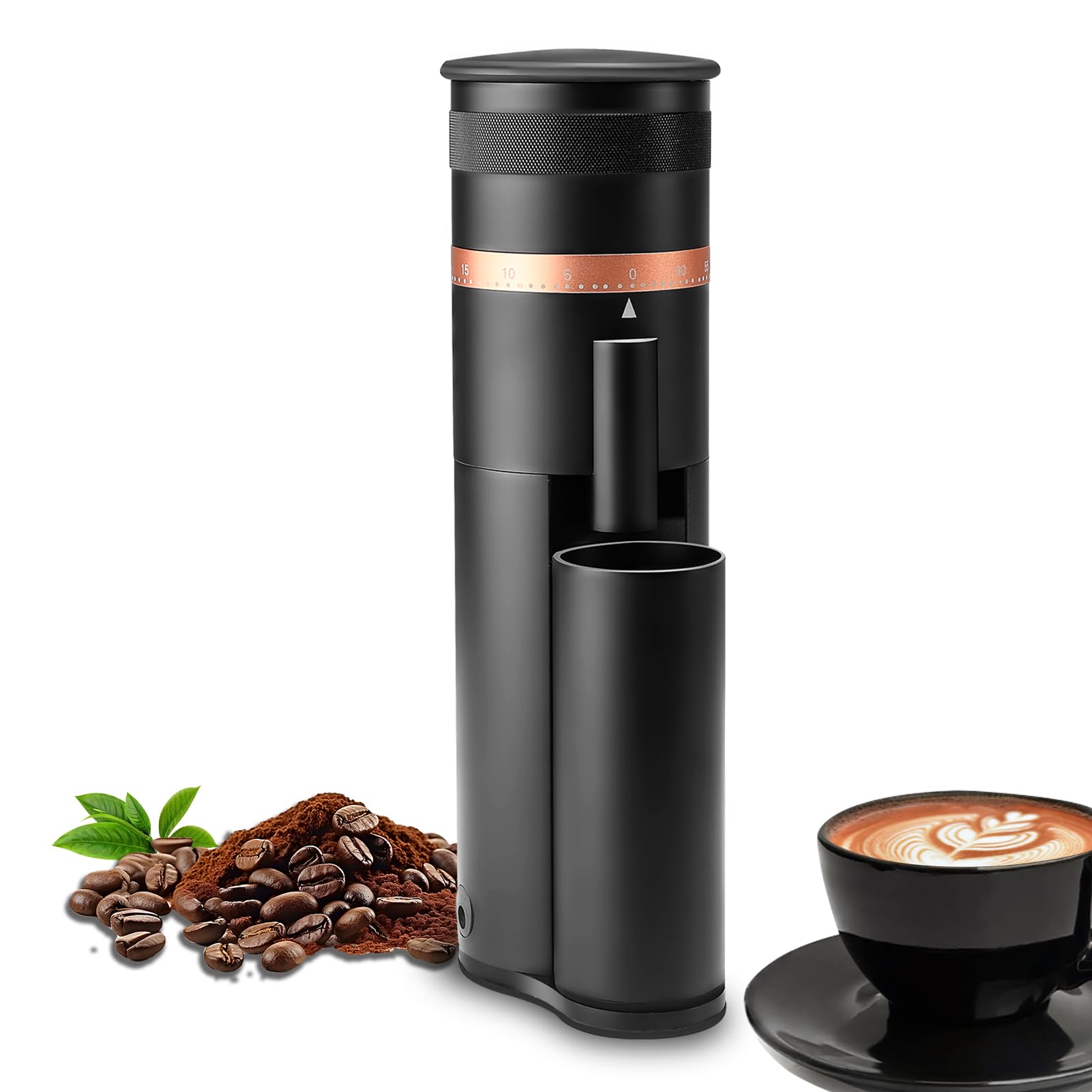 Molinillo de café eléctrico portátil con rebabas de cerámica, 38 ajustes de molienda ajustables, operación de un solo toque, recar