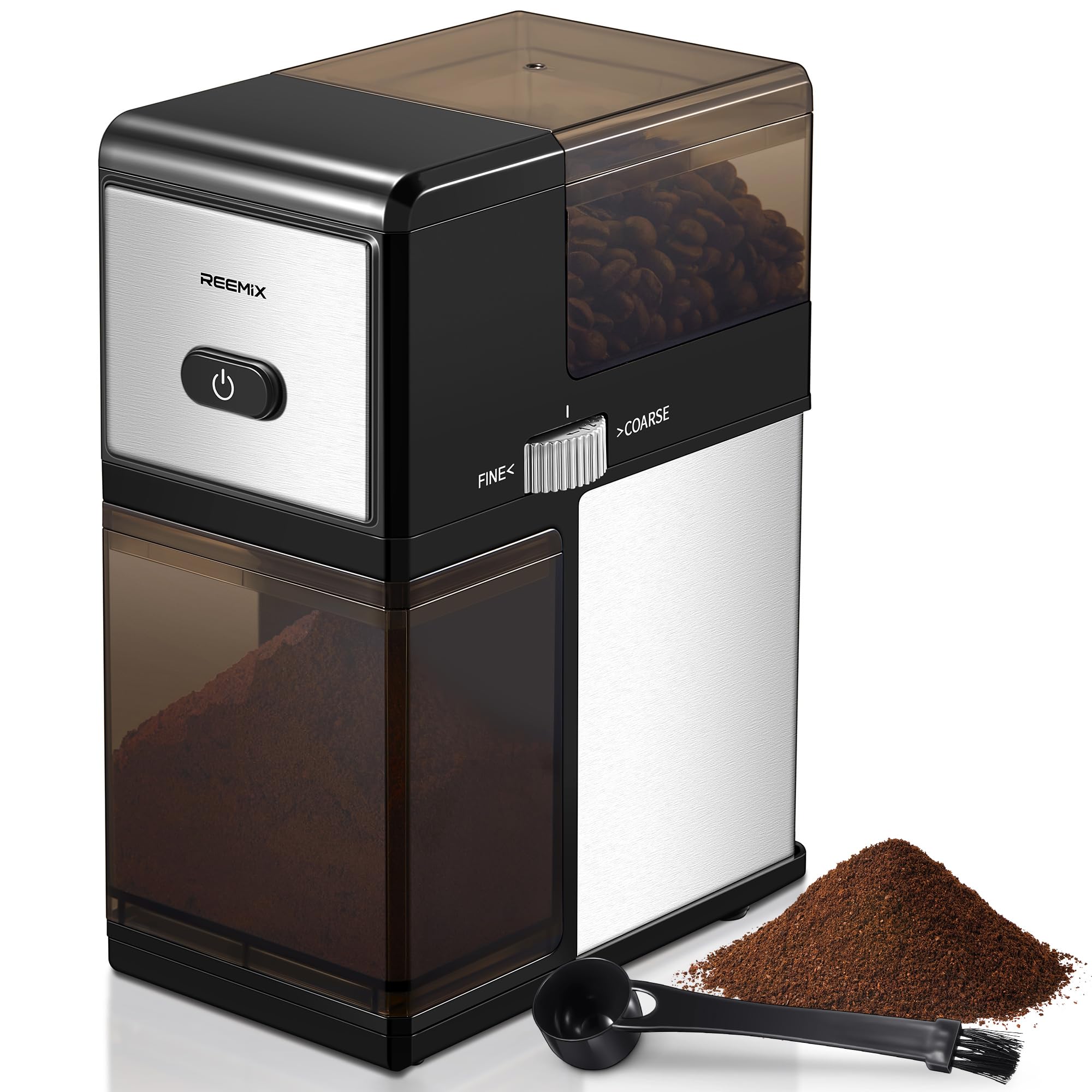 Huanyu Molinillo de café de rebabas planas con 19 ajustes de molienda, molinillo eléctrico de granos de café, molinillo de café aj