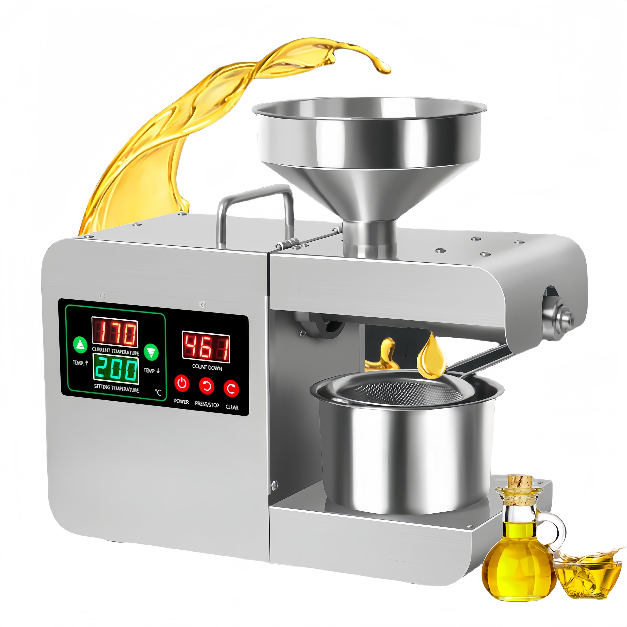 CGOLDENWALL Máquina de prensa de aceite, fabricación automática de aceite, extractor de aceite de 1000 W para prensado en frío y c