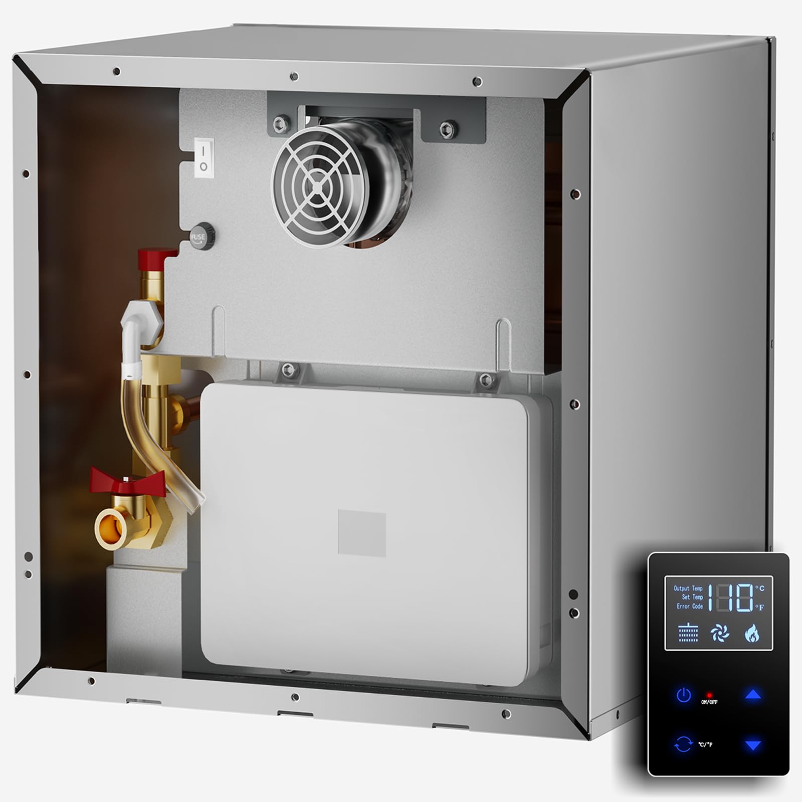 Calentador de agua sin tanque de gas natural, instalación al aire libre, hasta 5.3 GPM, 130000 BTU bajo demanda, calentador de agu