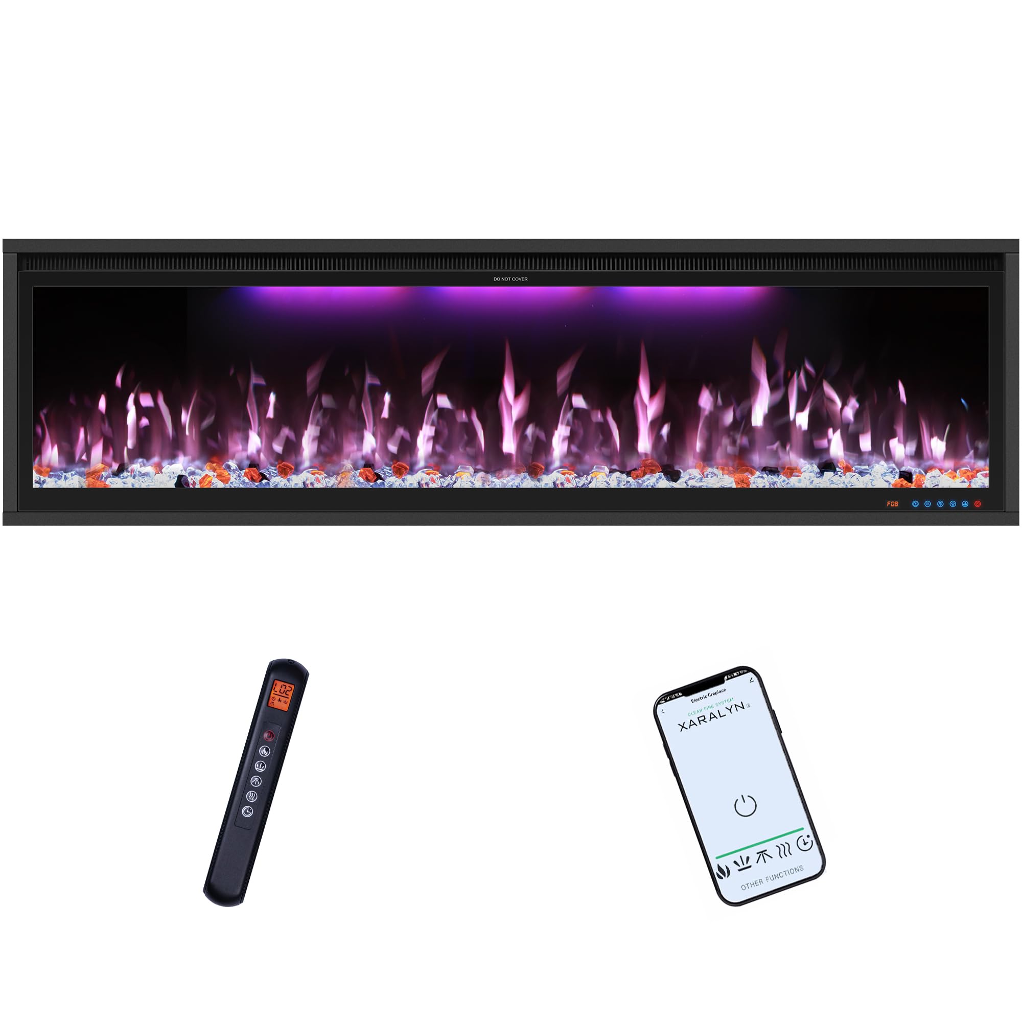 Chimenea eléctrica de 60 pulgadas, insertos de chimenea eléctrica empotrados y montados en la pared, control remoto y pantalla tác