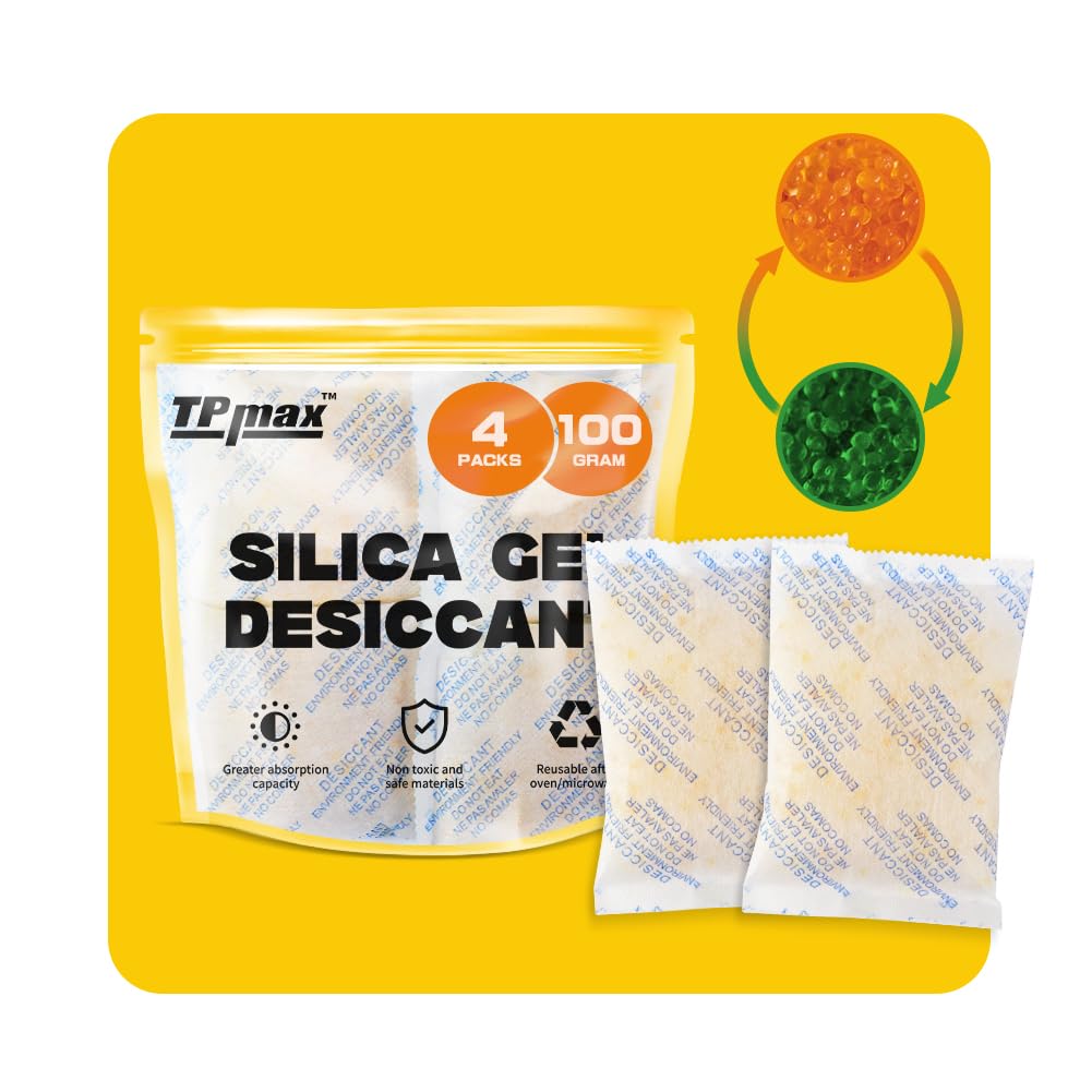 Paquete de 4 sobres desecantes de gel de sílice, deshumidificadores reutilizables con indicador de color, ideal para almacenamient