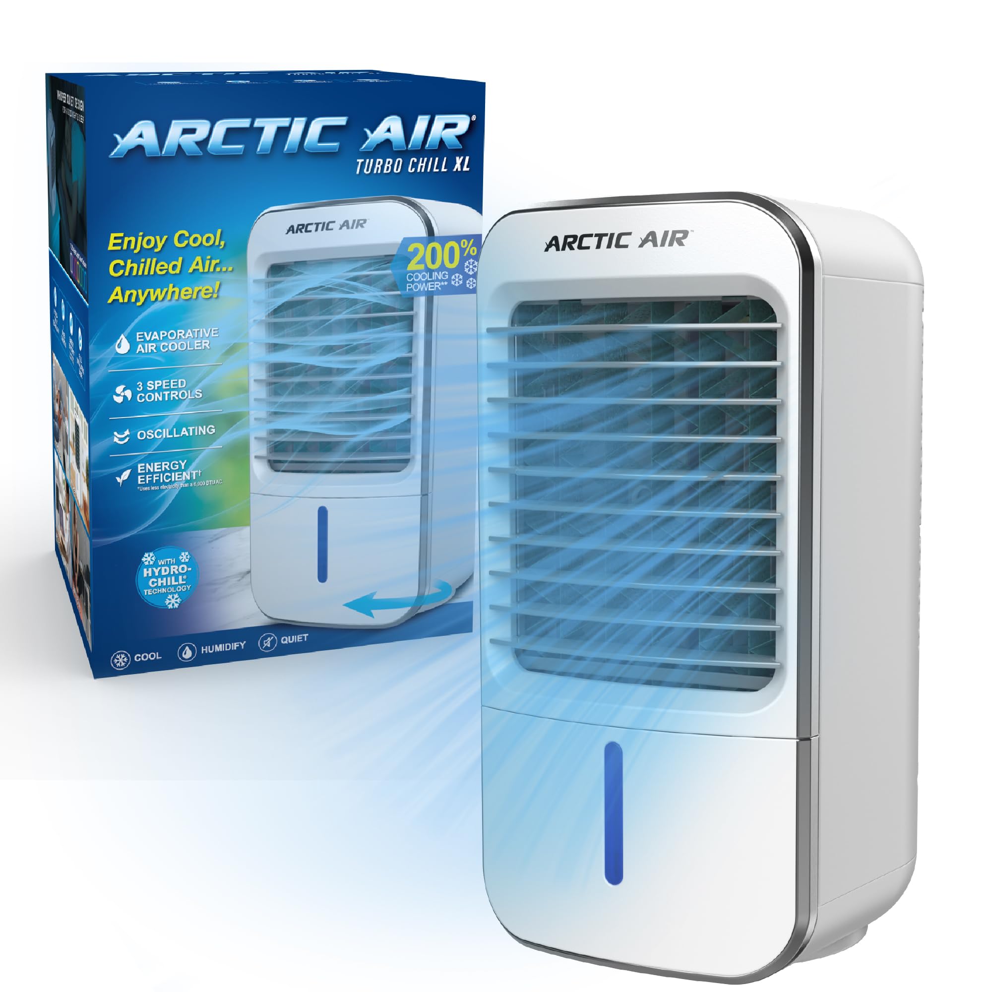 Arctic Air Turbo Chill XL Enfriador de aire evaporativo, ligero y silencioso, ventilador de refrigeración de 3 velocidades con con