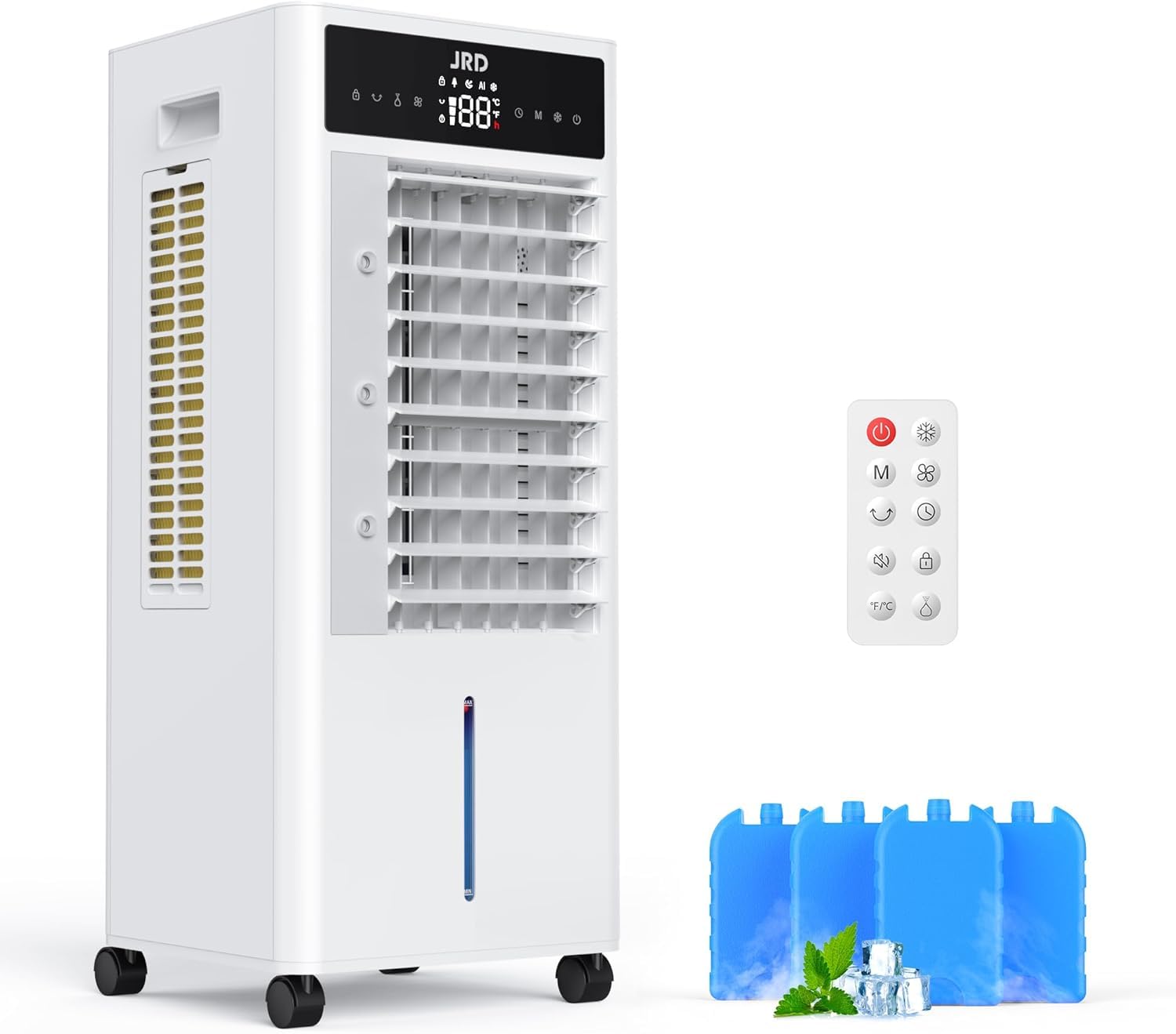 JRD Aire acondicionado portátil 3 en 1 para dormitorio, oficina, enfriador de aire evaporativo con tanque de 2.4 galones, 4 paquet