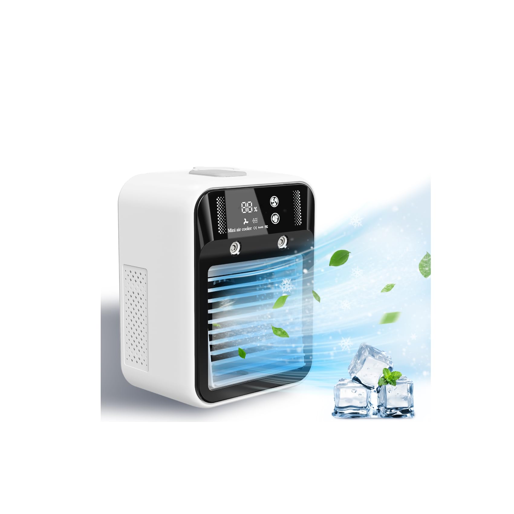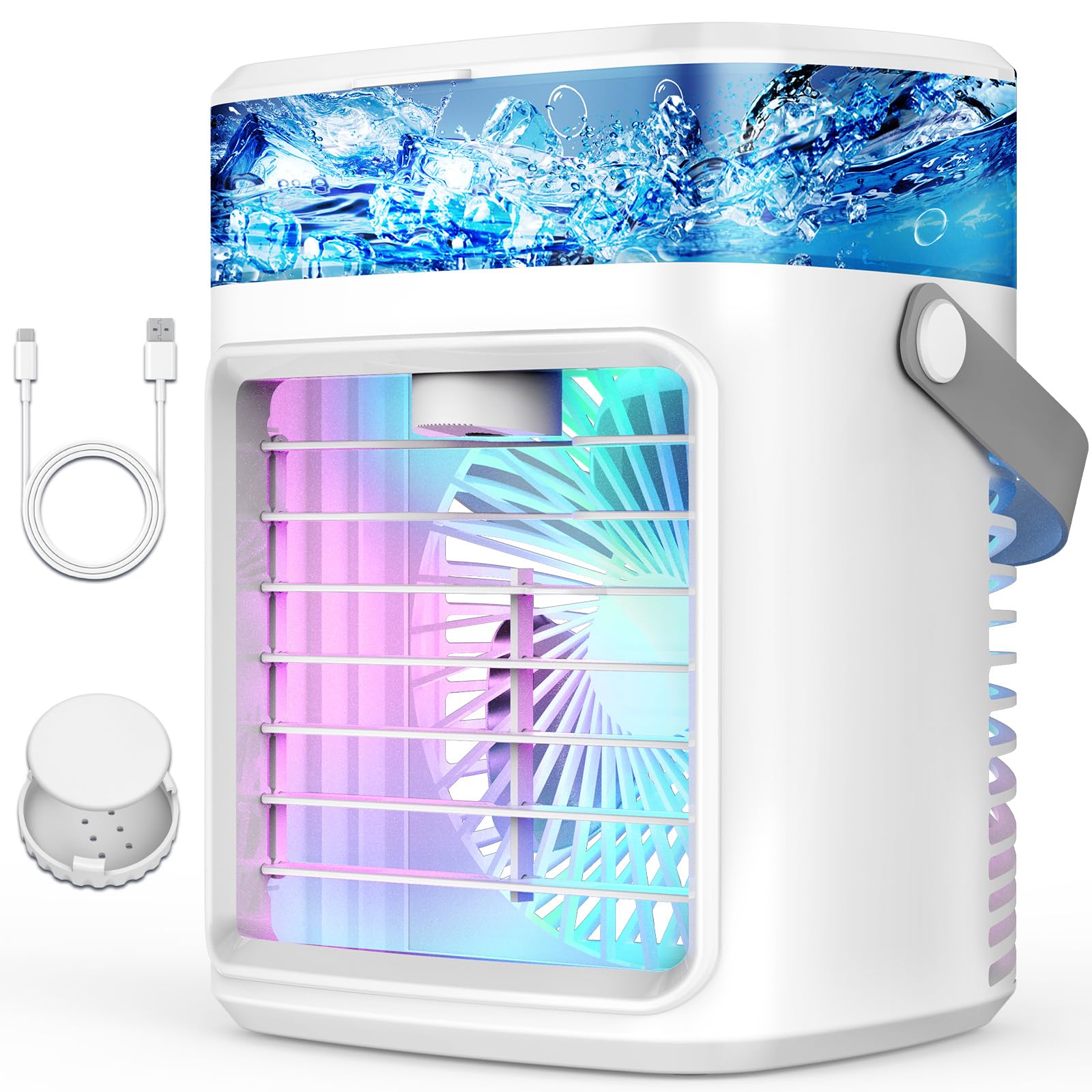 Portable Air Conditioners, Fast Cooling Evaporative Personal Air Cooler with 3 Wind Speeds, 2/4H Timer, 7 Color Lights, Mini Air C