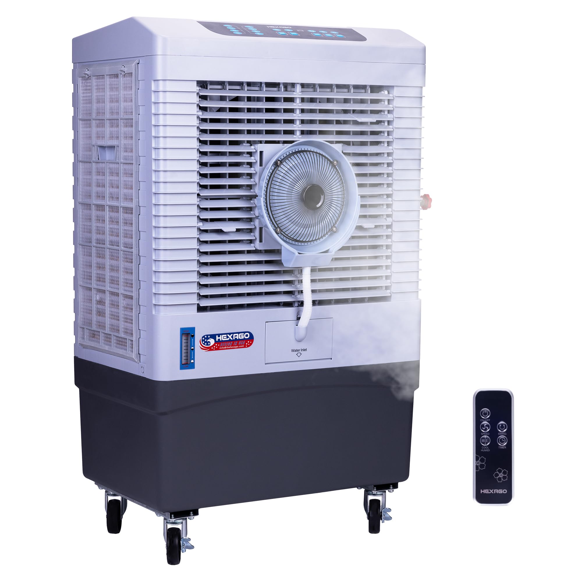 Enfriador de aire evaporativo de 5000 CFM con niebla, enfriador de pantano de 3 velocidades, control remoto y temporizador de 15 h