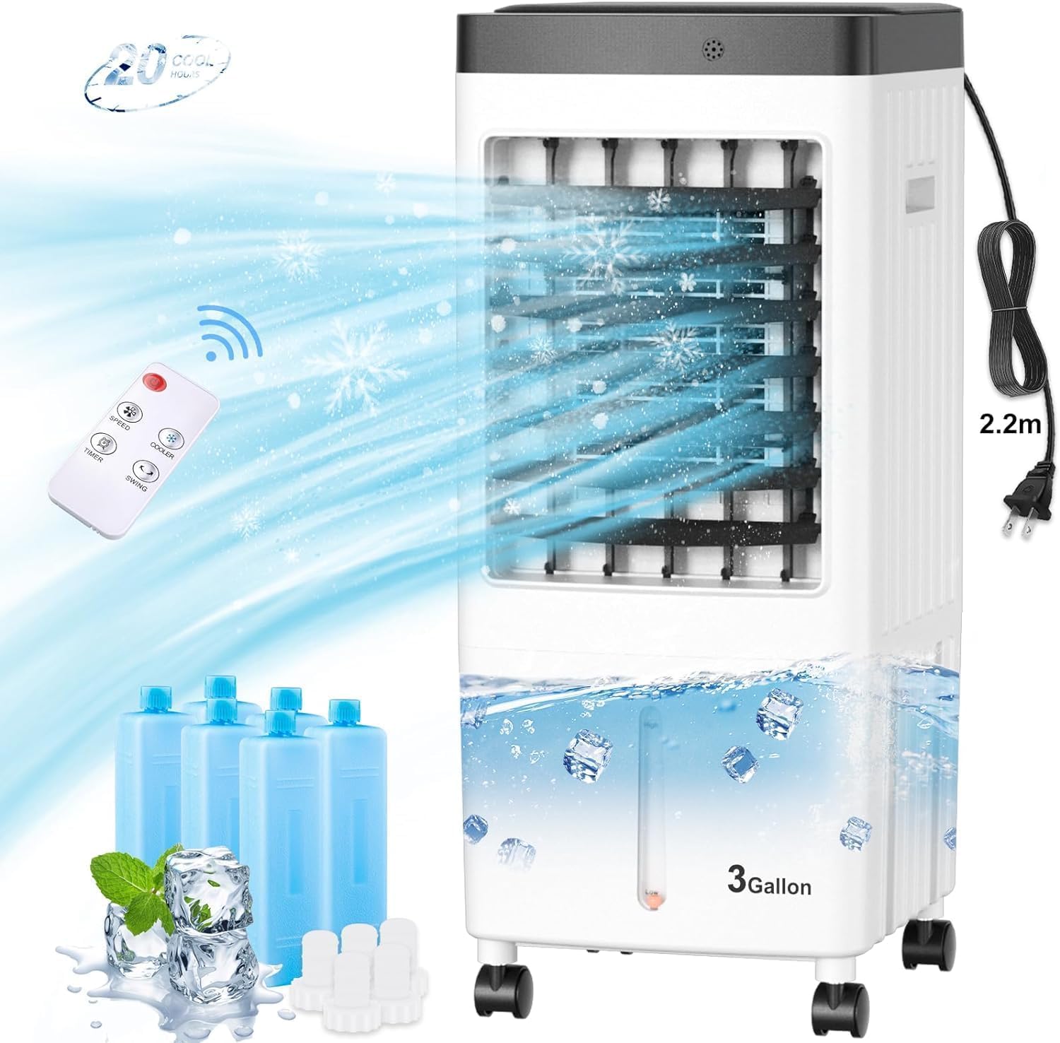 Swamp Cooler, enfriador de aire evaporativo 3 en 1 con pantalla y control remoto, aire acondicionado portátil sin ventanas con ref