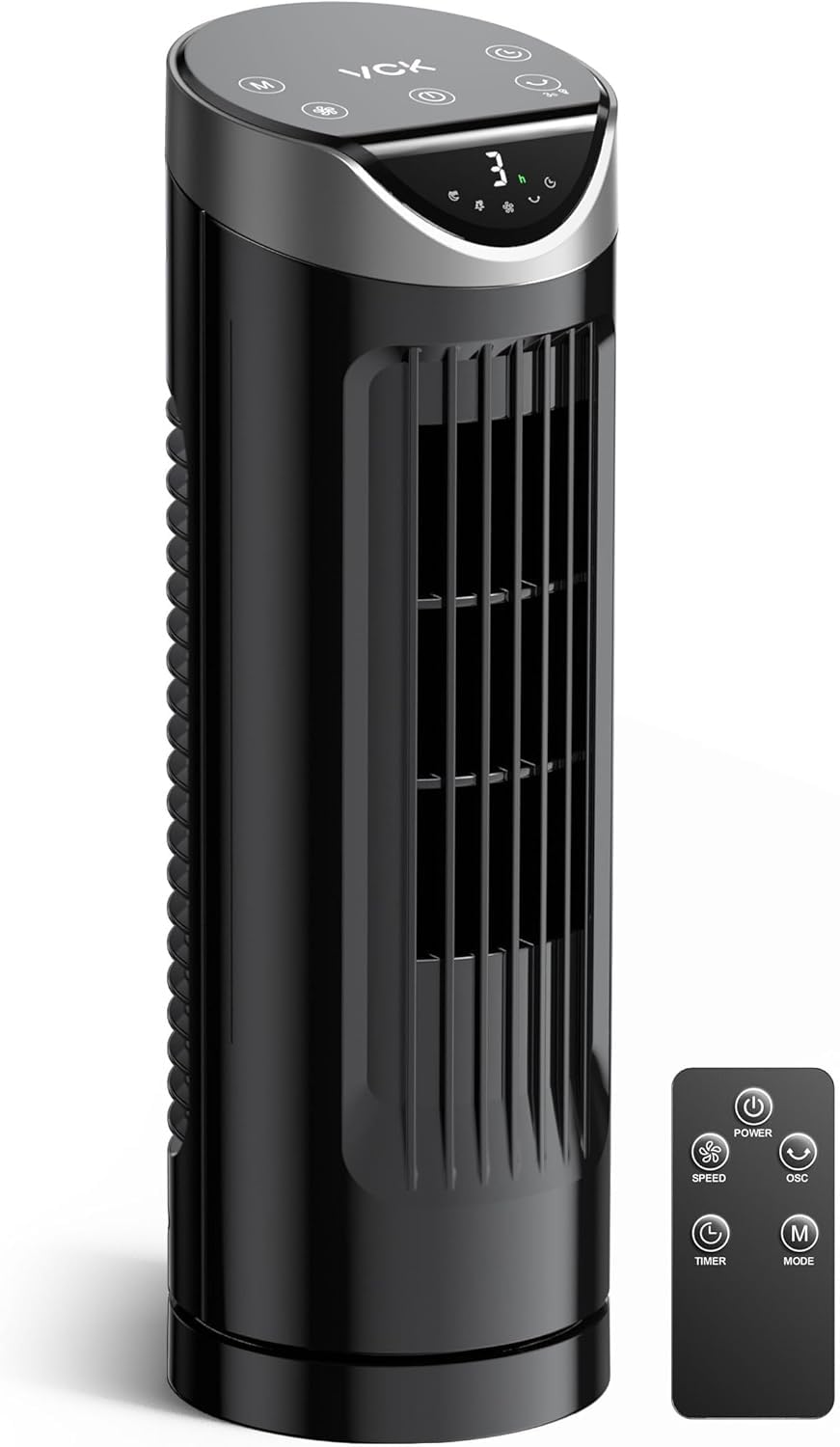 VCK Ventilador de torre para dormitorio, ventilador de escritorio de 27 pies/s con control remoto, ventilador de escritorio oscila