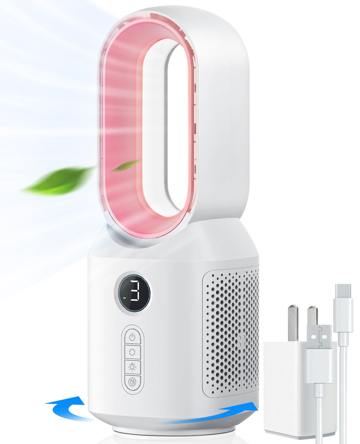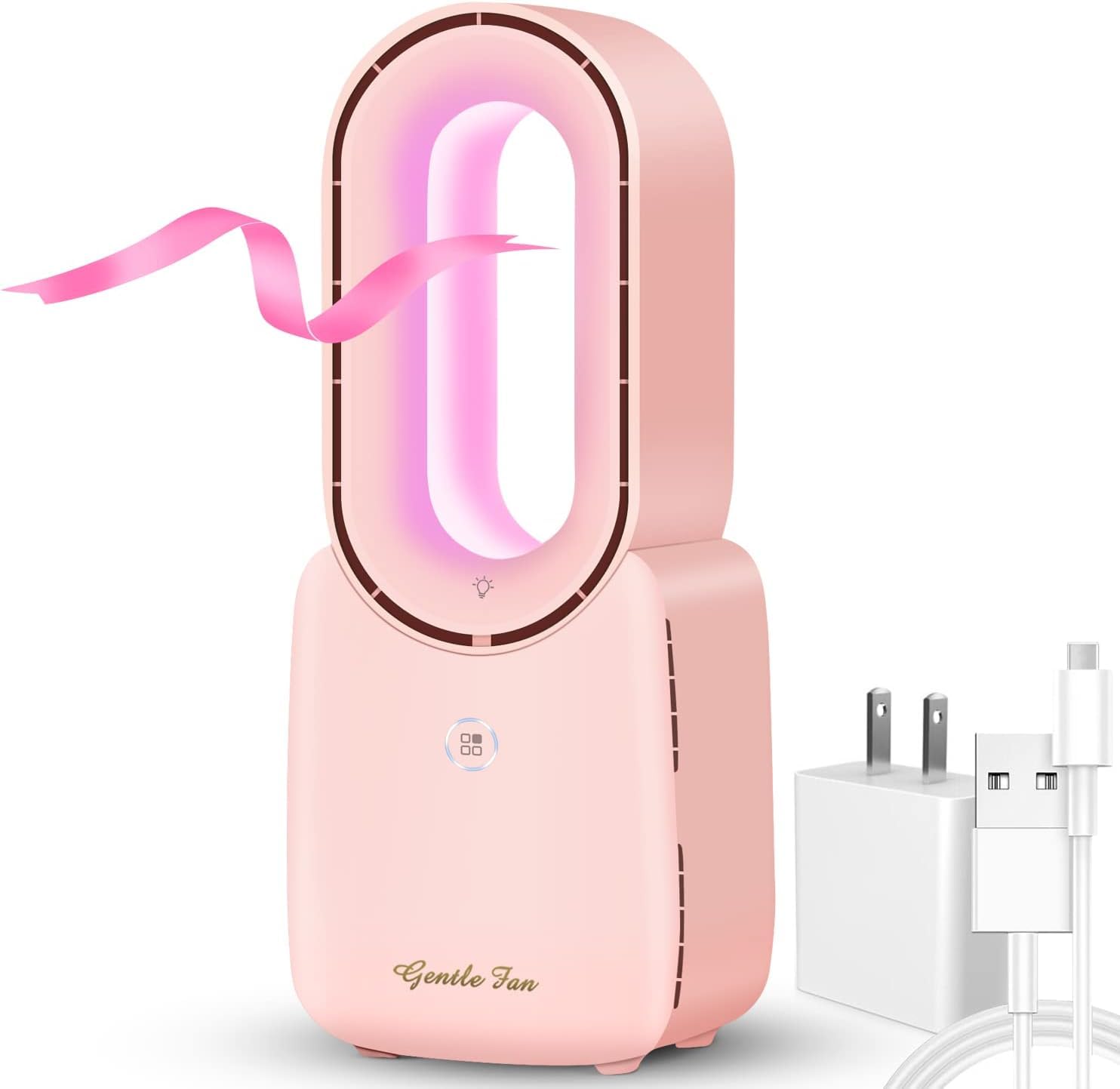 let’me Ventilador de escritorio, 11.8 pulgadas, sin aspas, mini ventilador de oficina, 4 velocidades con luz ambiental de 5 colore