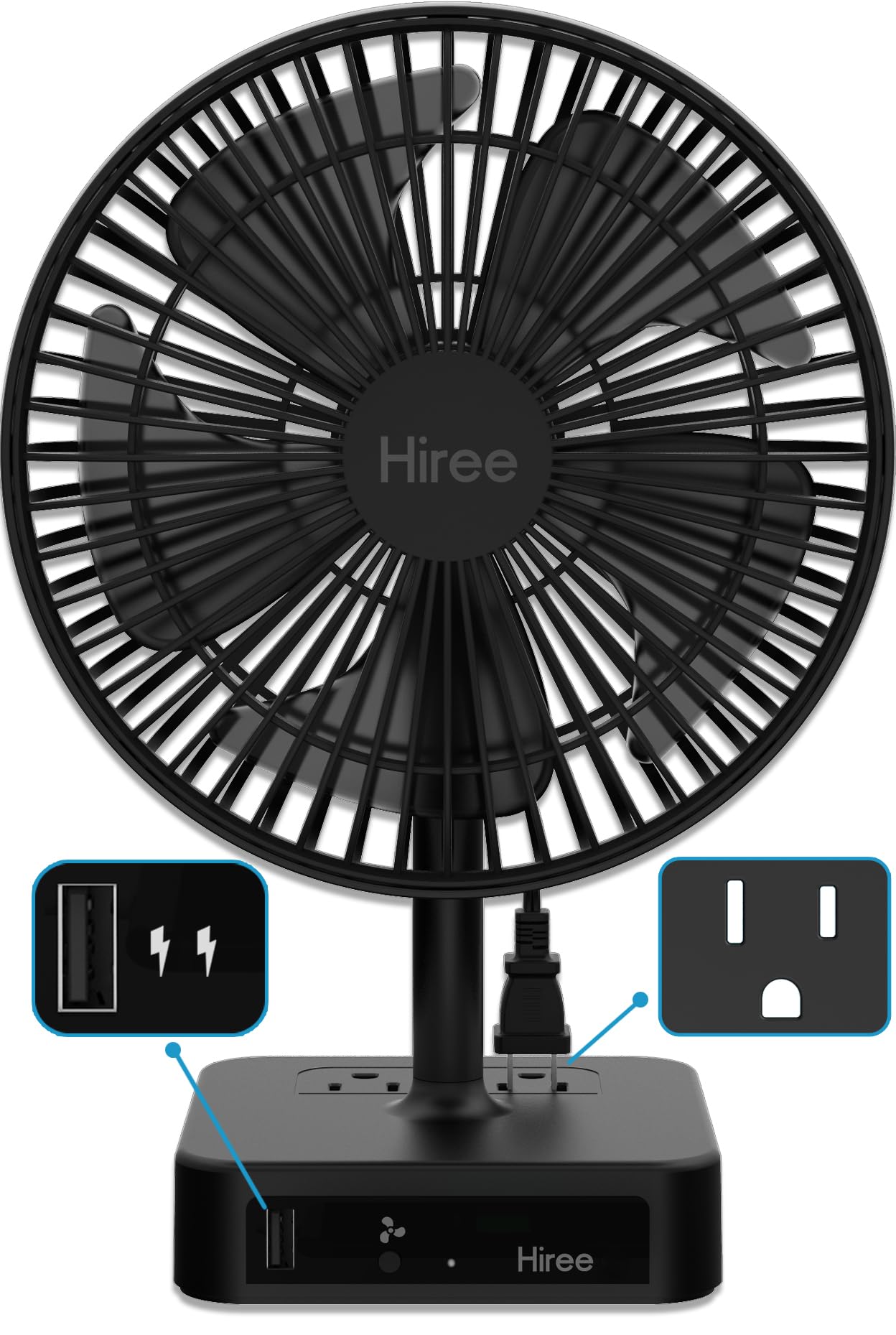 Ventilador de escritorio con puerto de carga USB, ventilador de mesa pequeño de 2 velocidades de 6.7 pulgadas con cargador USB, sa
