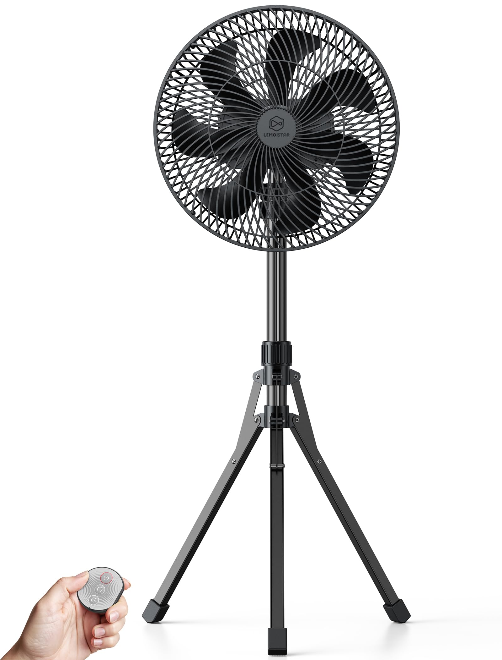 UN UNITEDTIME Ventilador plegable plegable con control remoto, ventilador de pedestal recargable de 7200 mAh para campamento, 4 ve