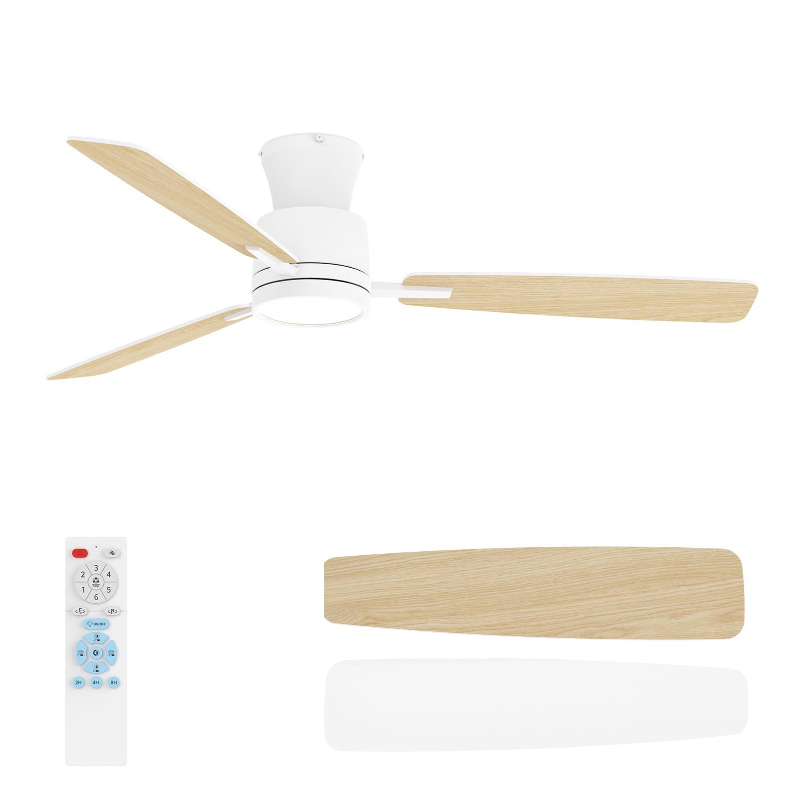 Ohniyou Ventilador de techo de montaje empotrado de 52 pulgadas con luces, control remoto y aplicación, ventiladores de techo de p