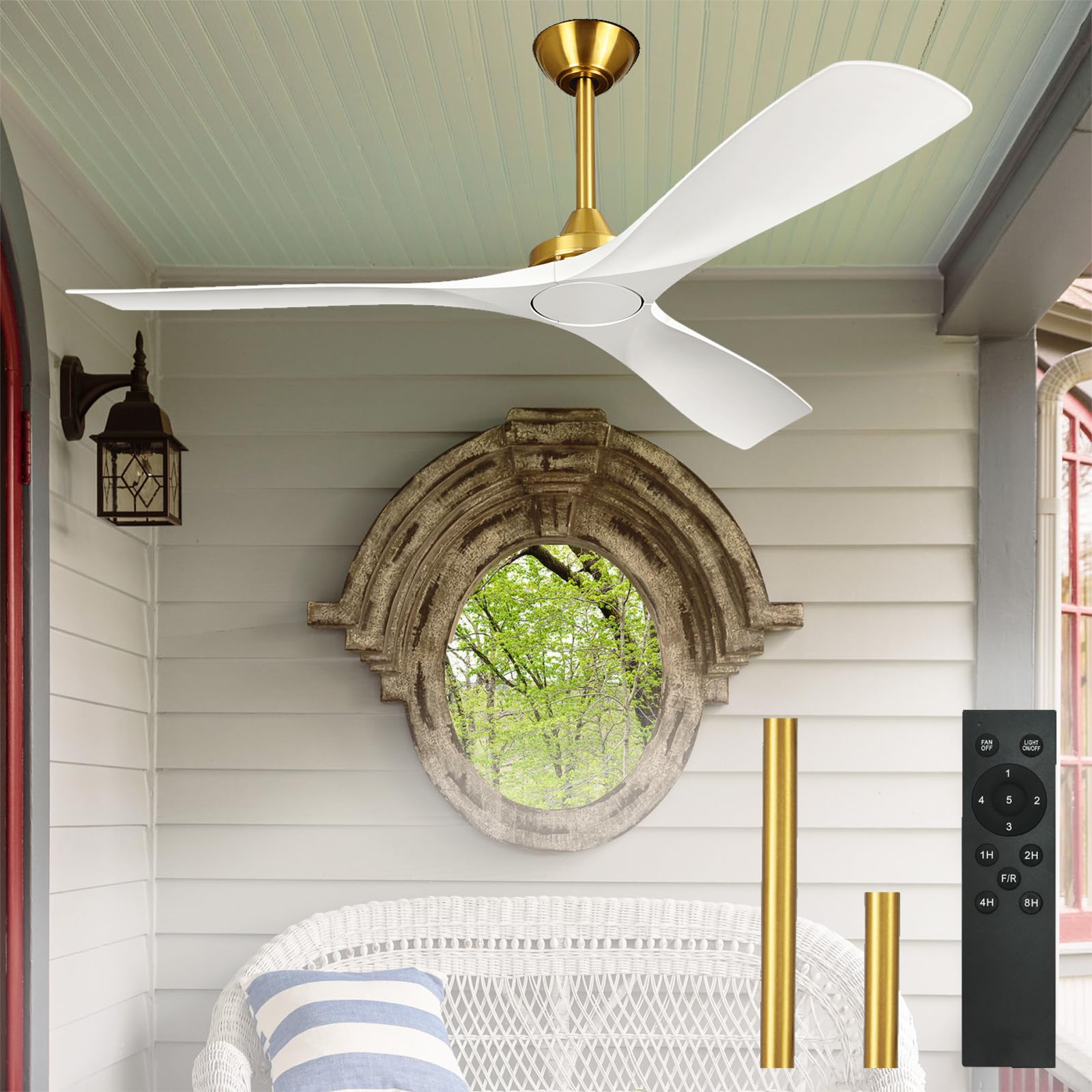 Ventiladores de techo inteligentes para exteriores de 65 pulgadas para patios con luz, Alexa/aplicación/control remoto, gran flujo