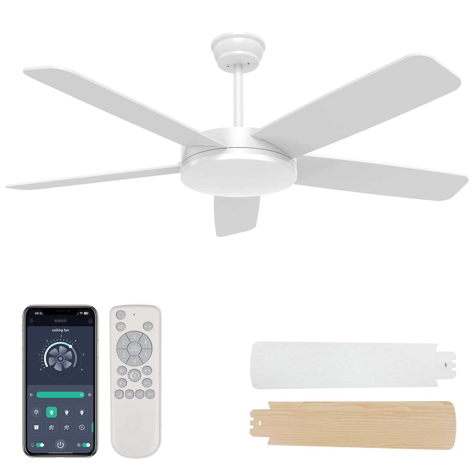 52 inch Ceiling Fans with Lights, Ceiling Fan with Light and Remote Control, Reversible, Quiet, Smart Ceiling Fan with Dimmable LE
