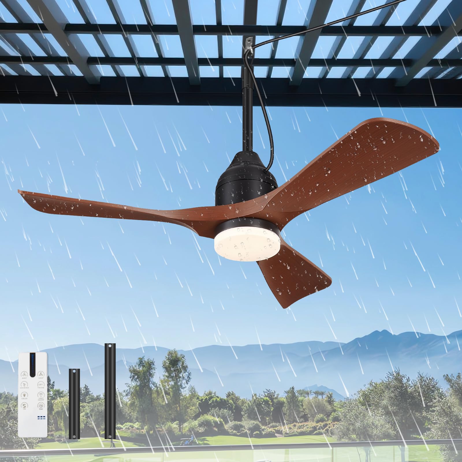 Ventilador de cenador de 42 pulgadas, ventilador de techo para exteriores con luz LED de 3 colores y control remoto, IP65, imperme