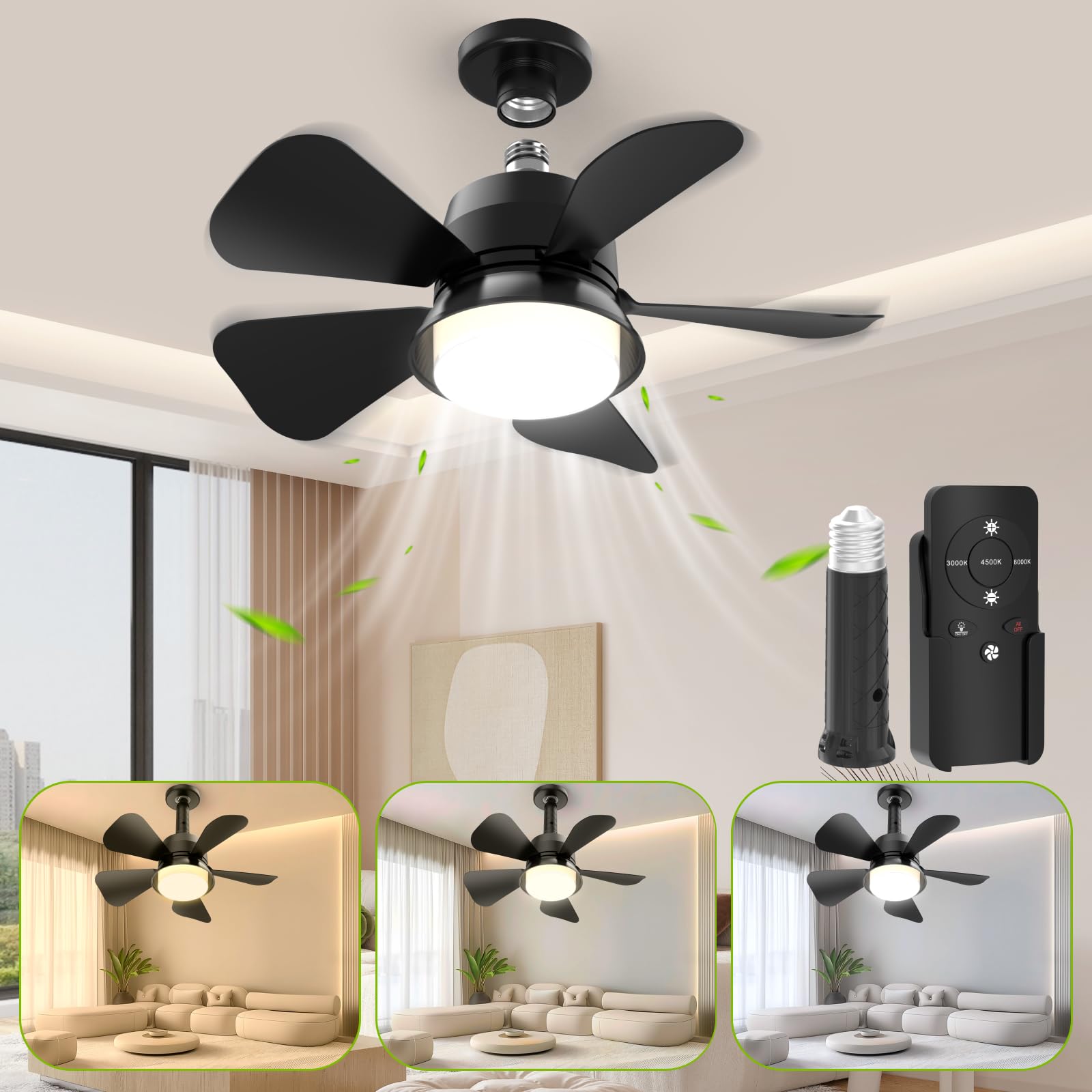Ventiladores de techo con luces, aplicación de actualización y control remoto, luz LED regulable de 3CCT, ventilador de techo reve