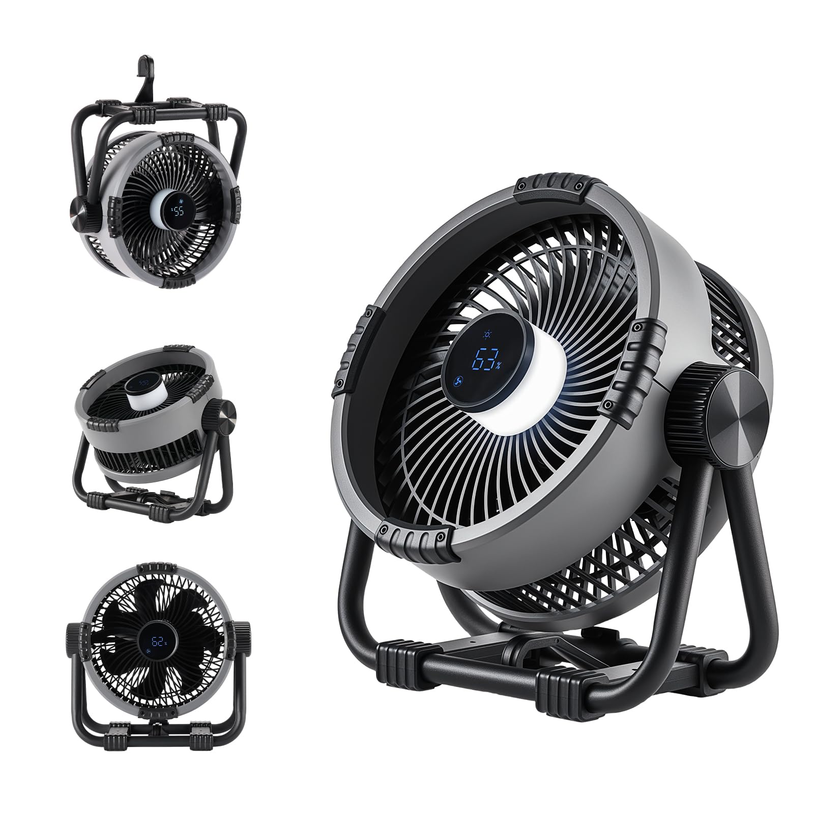 AJVV Ventilador de campamento, ventiladores portátiles recargables de 20000 mAh con luz LED y gancho, 13 velocidades ajustables de
