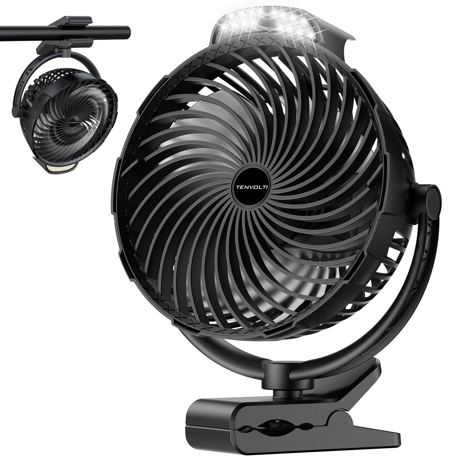 Ventilador de clip de 10000 mAh, ventilador de carrito de golf de 8 pulgadas recargable con luz LED, 9 velocidades de flujo de air