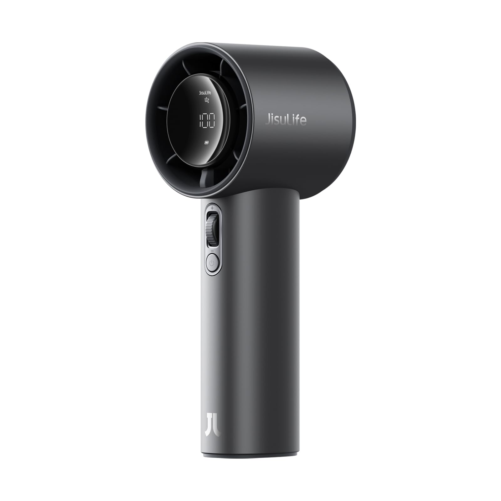JISULIFE Ventilador portátil, ventilador de mano personal de refrigeración máxima de 18 horas con pantalla LED, carcasa de metal,