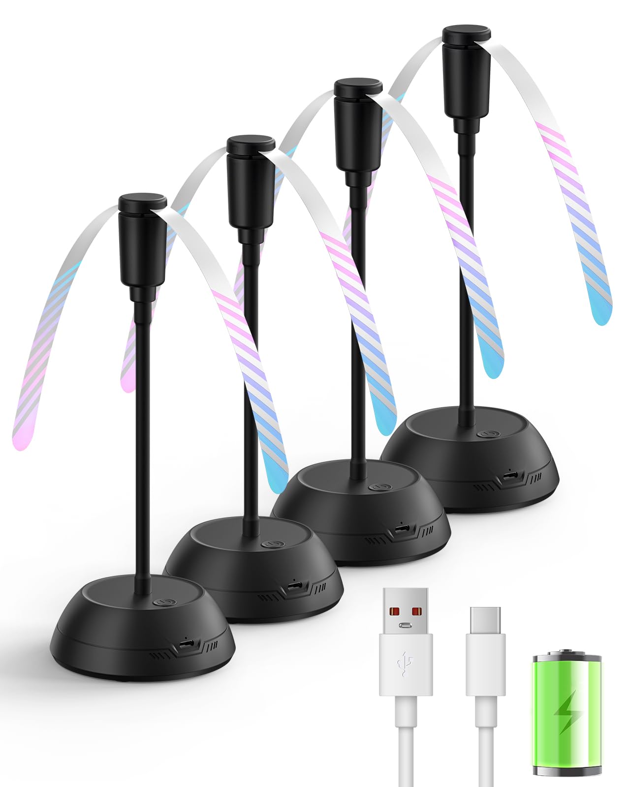 4 ventiladores de alimentos para mesa, ventiladores de mesa portátiles recargables de 2000 mAh con cuchillas holográficas y cuello
