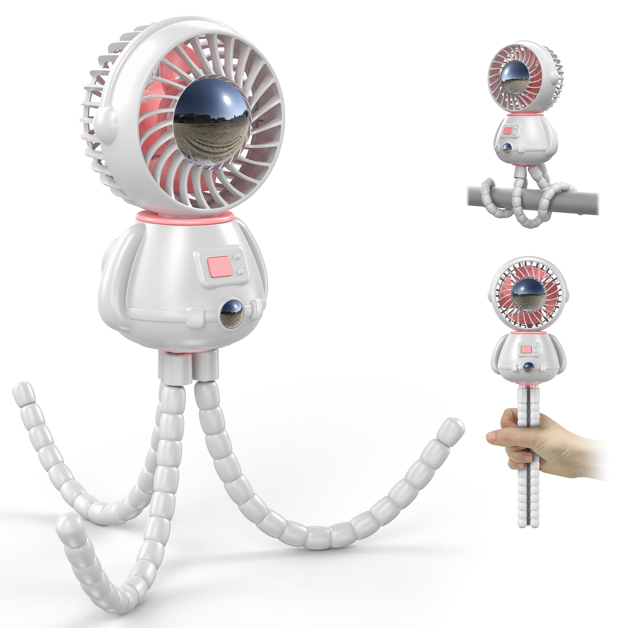 Koonie Astronaut – Ventilador portátil para cochecito, clip seguro para bebés con trípode flexible desmontable, 3 velocidades, rot