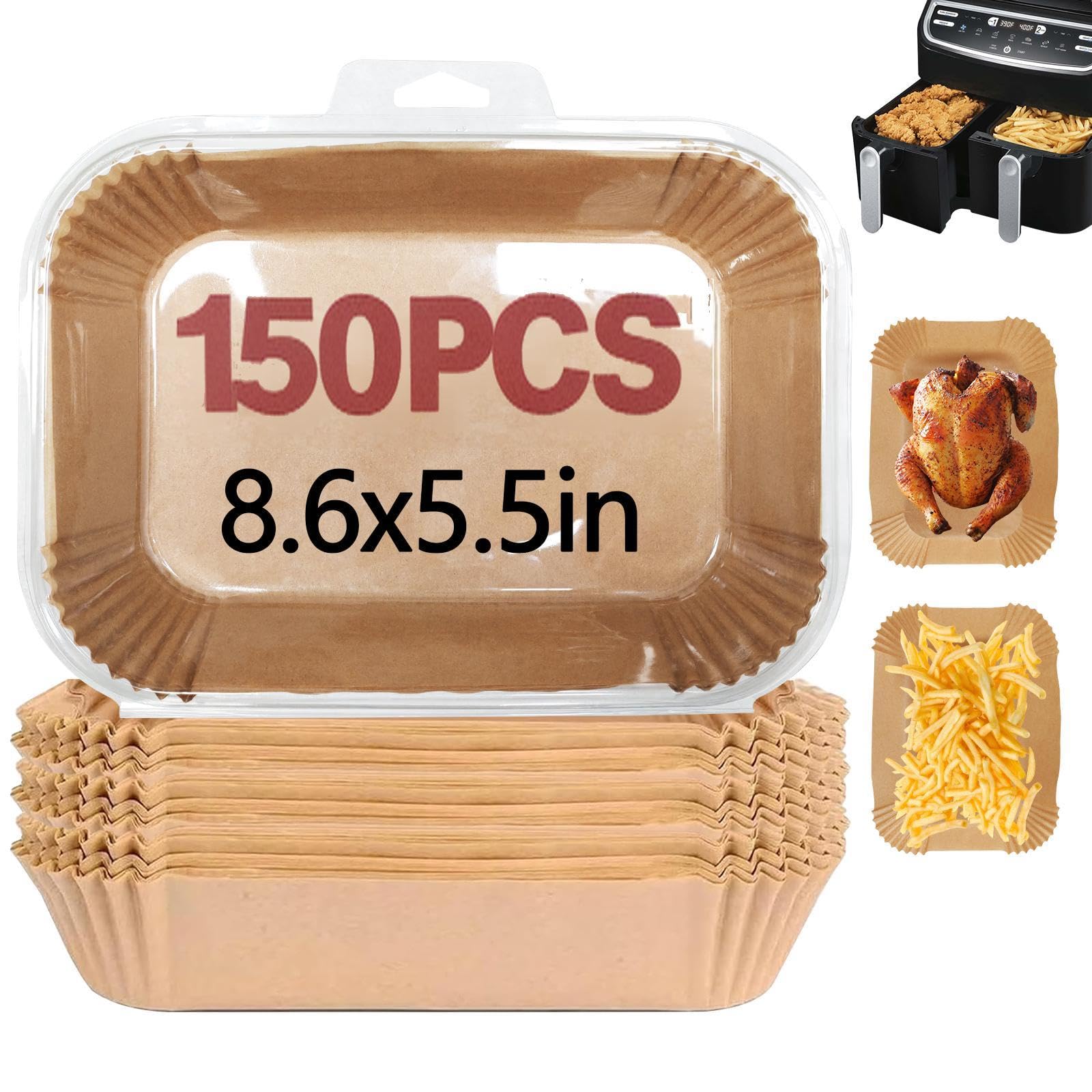 150PCS Air Fryer Liners for Ninja, 8.6 x 5.5 inch Disposable Air Fryer Paper Dual Basket, Non-Stick Unbleached Parchment Paper Bak