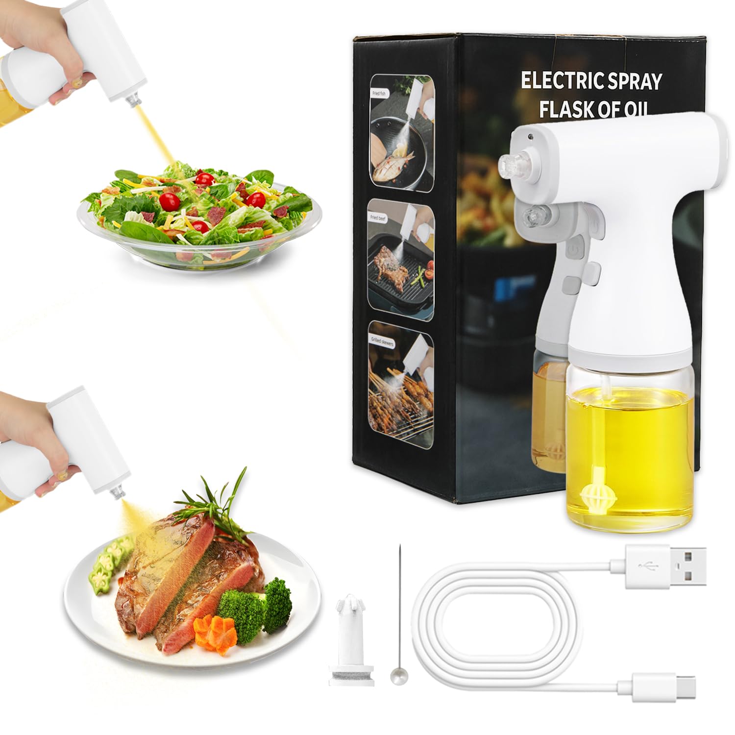Pulverizador de aceite para cocinar, pulverizador eléctrico de aceite de oliva de vidrio de 8.5 fl oz, dispensador de aceite para
