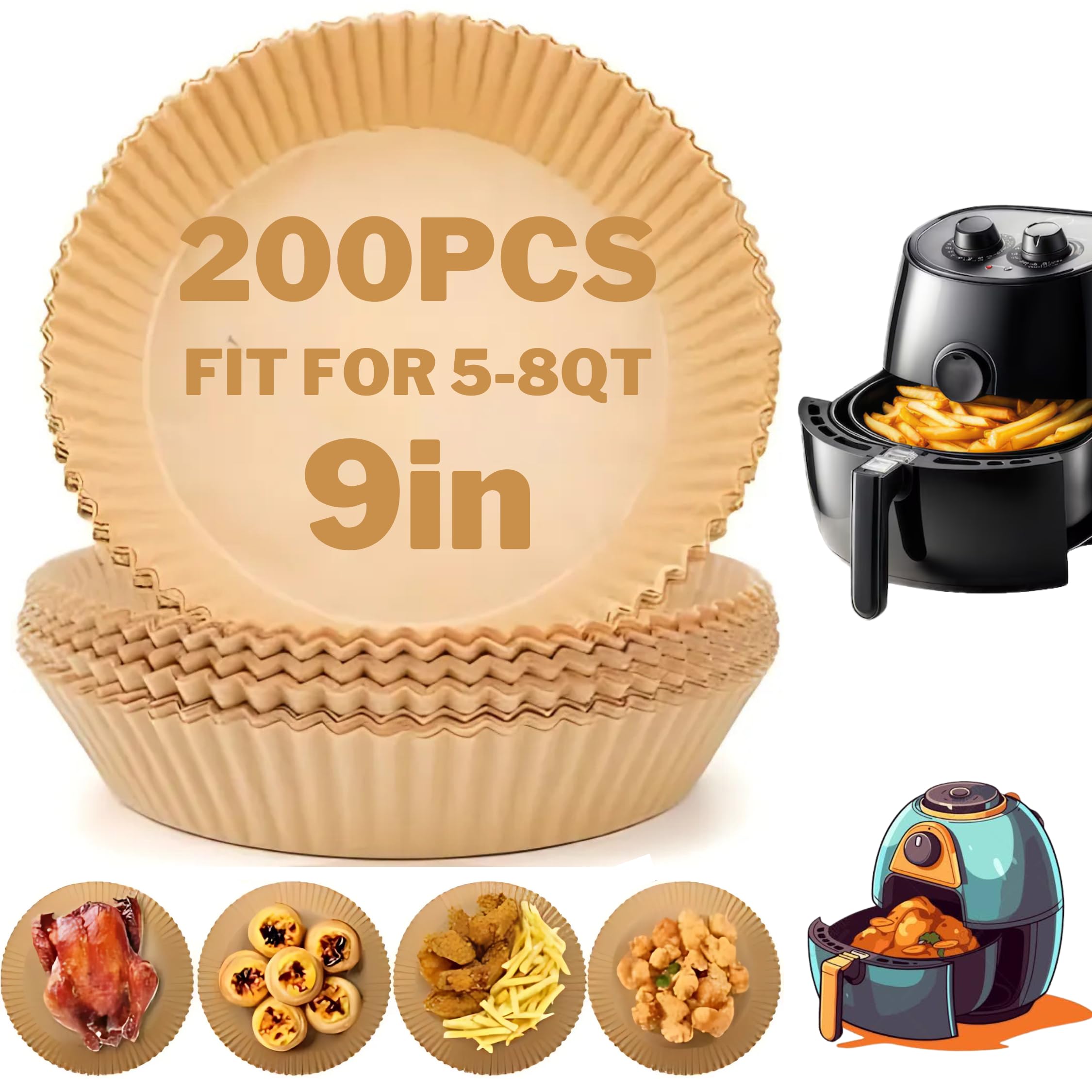 ECO Dazzle’s Forro redondo para freidora de aire de 9 pulgadas, 200 piezas de papel antiadherente para freidora de aire, hornear,