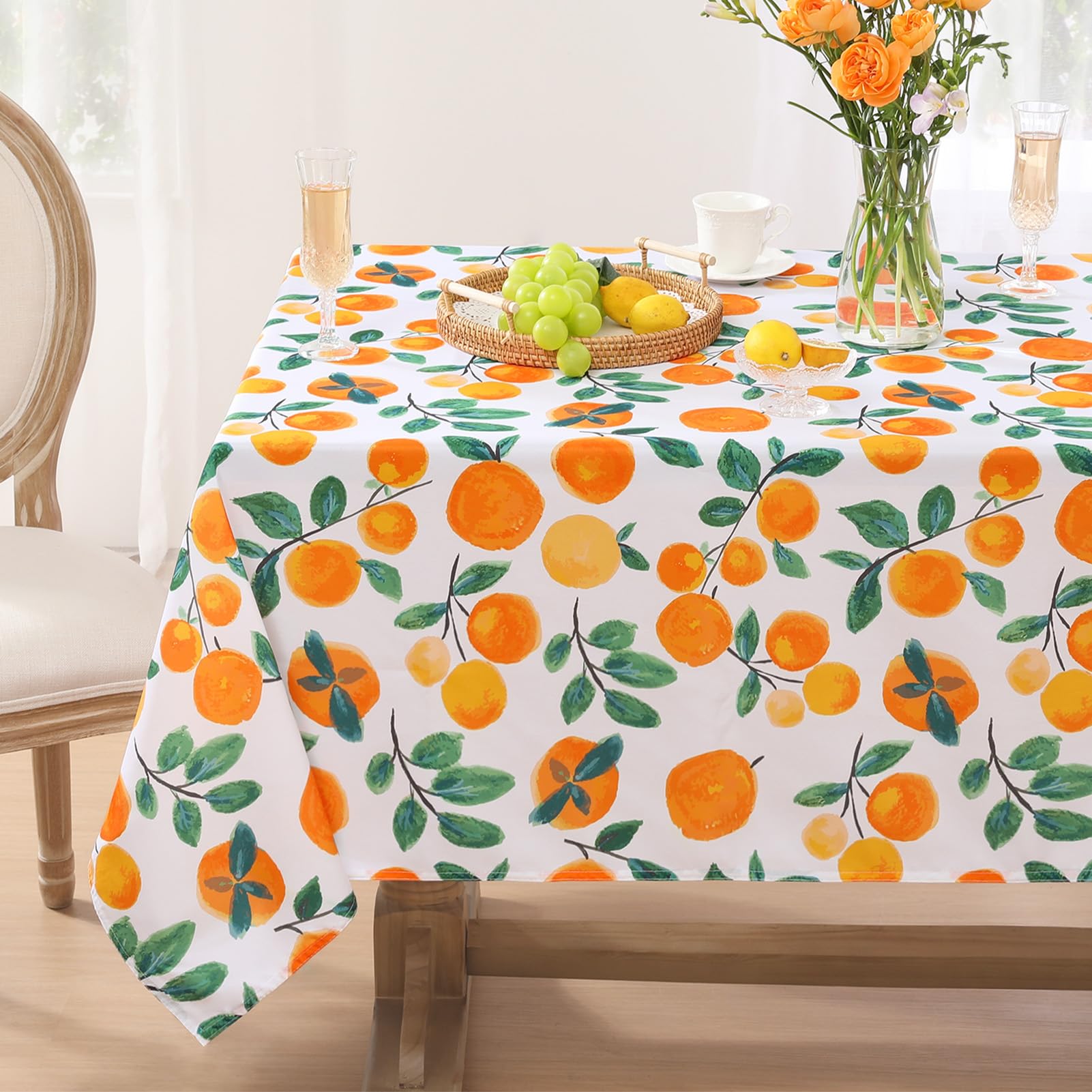 Softalker Mantel rectangular de verano – Mantel decorativo de flores naranjas impermeables, resistentes a las manchas, sin arrugas