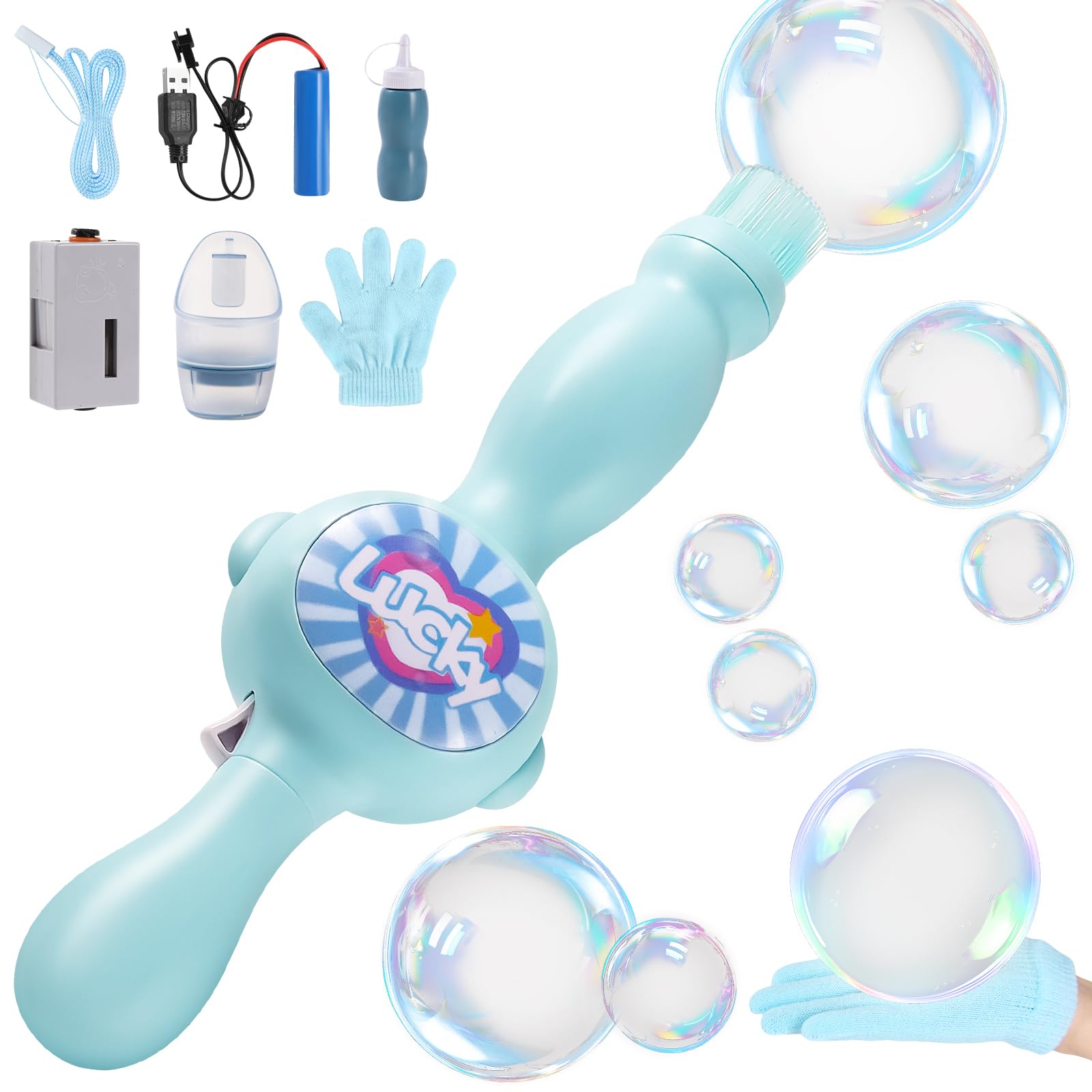 Máquina de burbujas de humo colorida, varita elástica de niebla de burbujas, mágica, máquina interactiva mágica de burbujas de hum