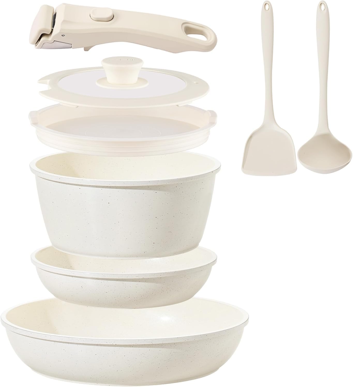Juego de utensilios de cocina de cerámica antiadherentes, 8 piezas, juego de ollas y sartenes, mango desmontable, juego de cocina