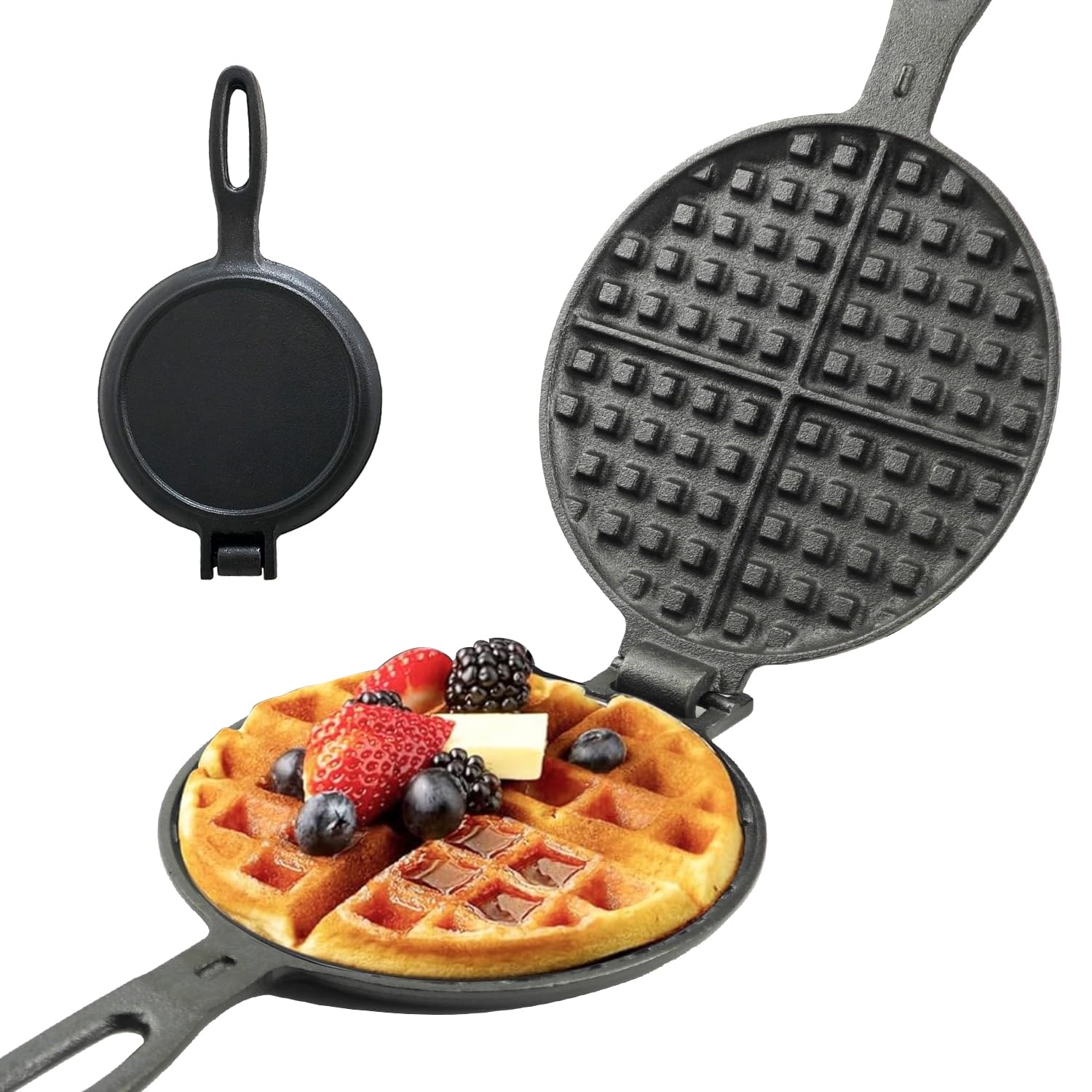 Lehmans – Máquina para hacer gofres de hierro fundido, plancha de gofres no eléctrica con bisagras de dos piezas para estufa o par