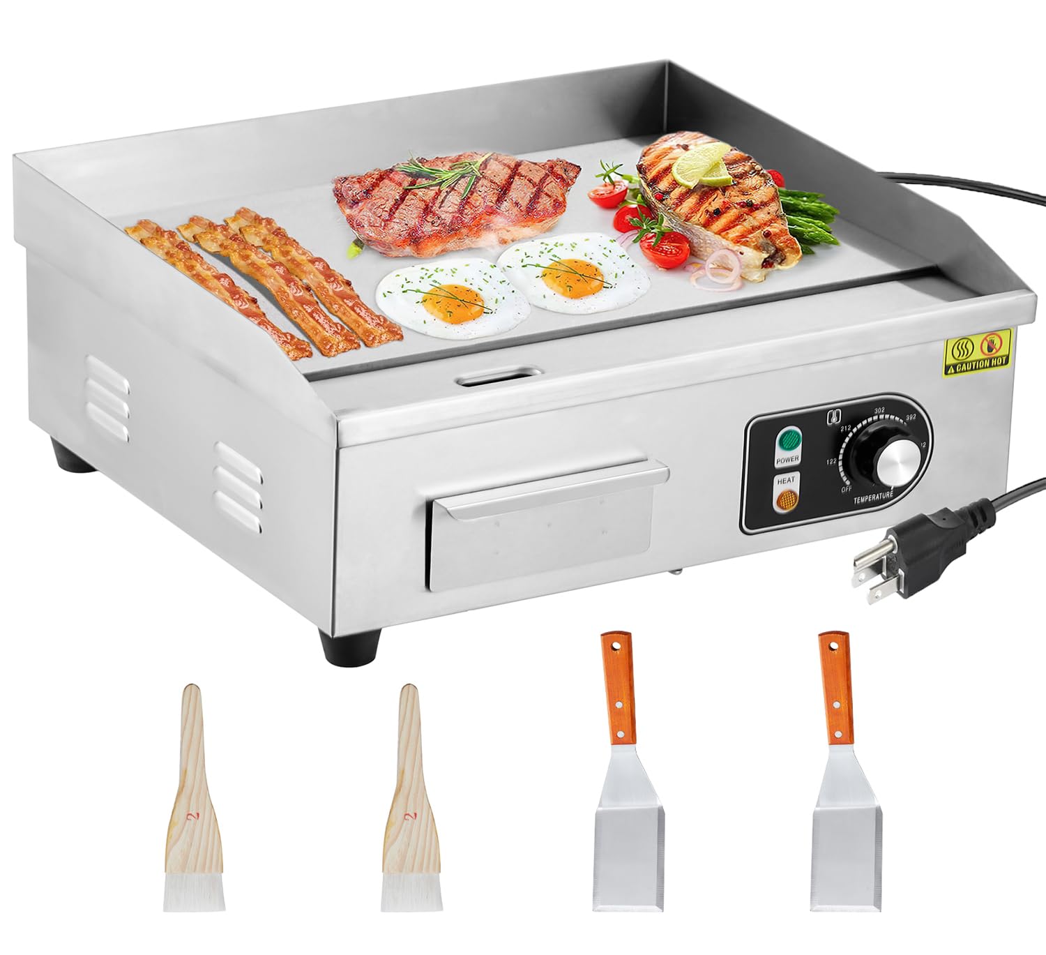 Plancha eléctrica de encimera de 18 pulgadas, parrilla comercial de 3000 W con control de temperatura ajustable, plancha Teppanyak