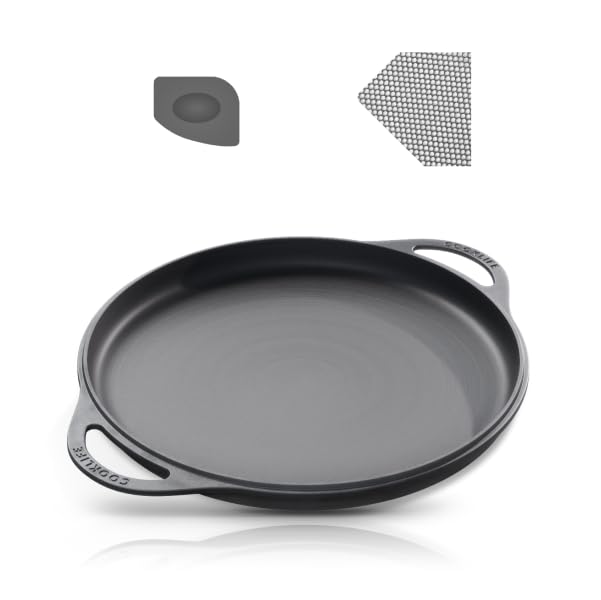 Parrilla ligera de hierro fundido pre-sazonado de 12 pulgadas con kit de limpieza, superficie lisa y pulida, sartenes de hierro fu