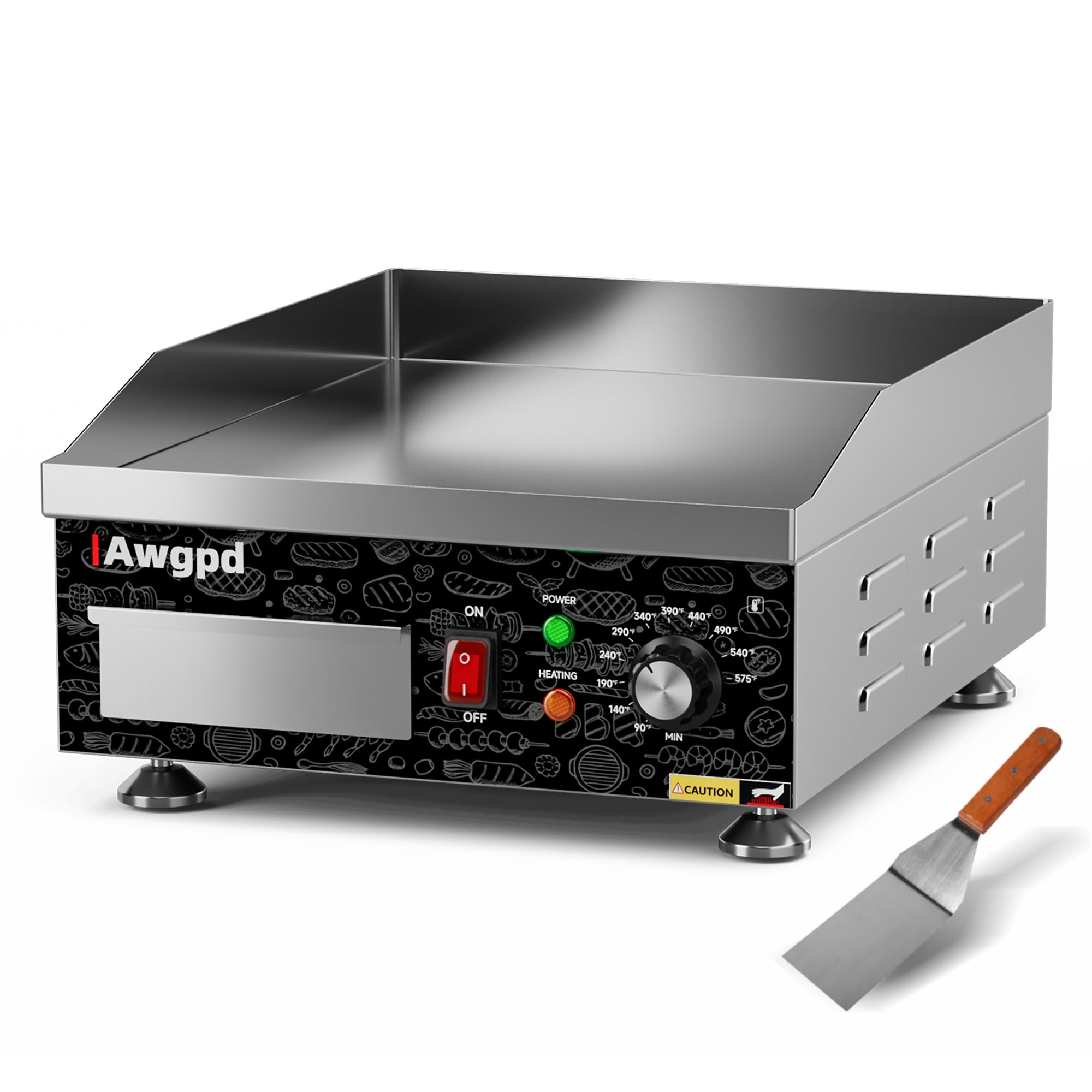 Dyna-Living Plancha eléctrica comercial para encimera, plancha de 14 pulgadas, antiadherente, parrilla eléctrica de acero inoxidab