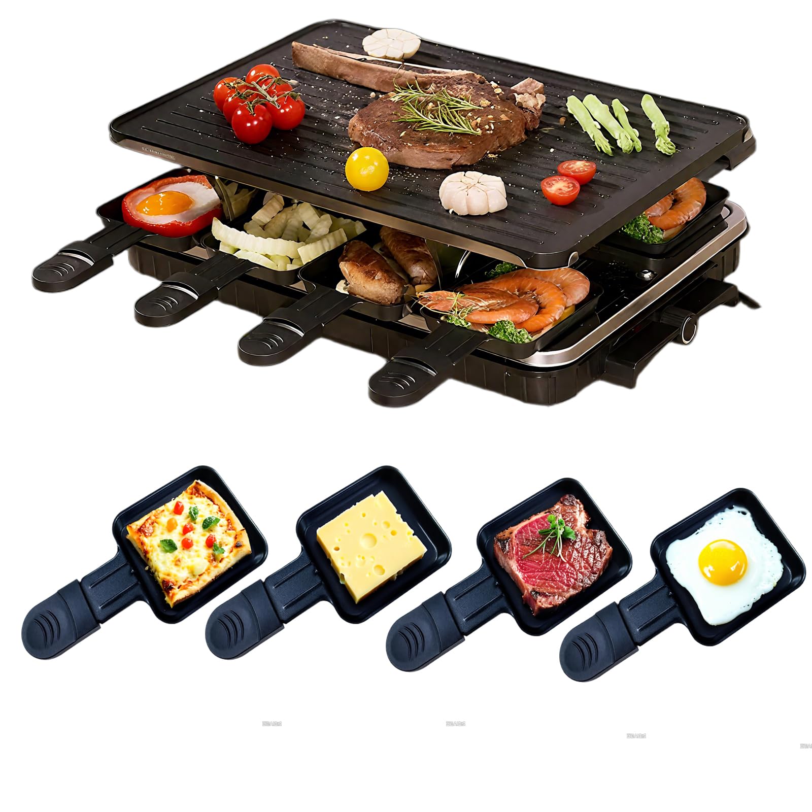 Raclette – Parrilla de mesa para interiores, parrilla eléctrica coreana, parrilla eléctrica 2 en 1, antiadherente con 8 bandejas d