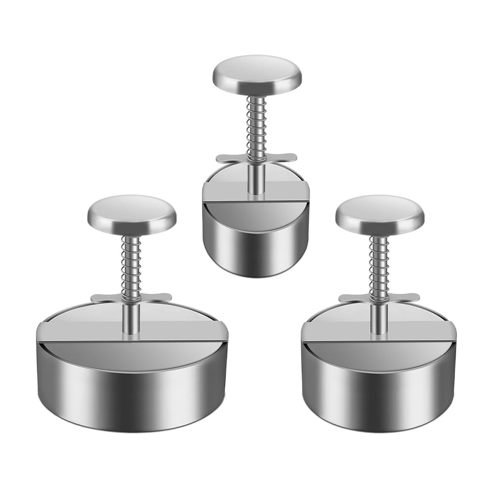 Prensa de hamburguesas, 3 piezas de prensa redonda de hamburguesas, antiadherente ajustable de acero inoxidable para cocina, barba