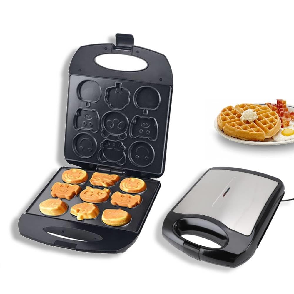 Máquina eléctrica de gofres para niños, 9 divertidos mini panqueques de gofres con forma de dibujos animados, antiadherente, para